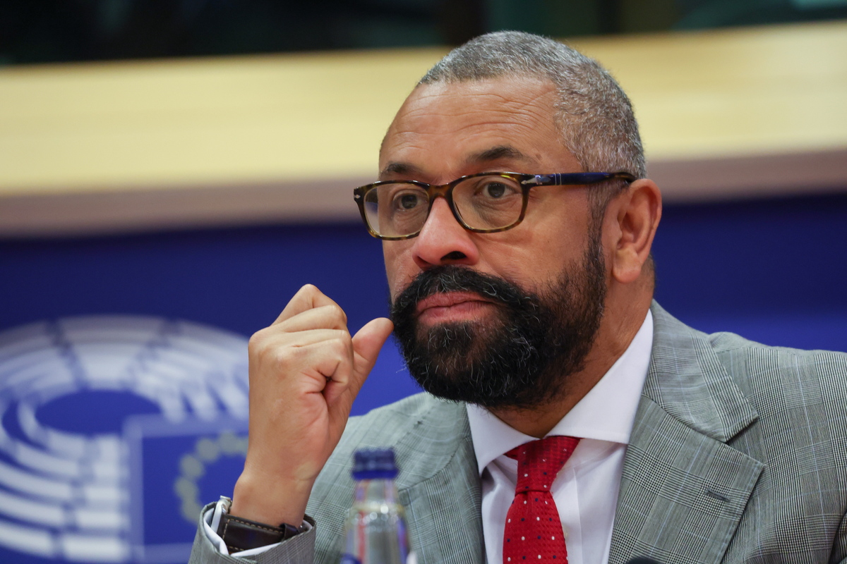 epa10723897 Foreign Secretary of the United Kingdom James Cleverly takes part at the EU-UK Parliamentary Partnership Assembly at European Parliament in Brussels, Belgium, 03 July 2023. EPA/OLIVIER HOSLET