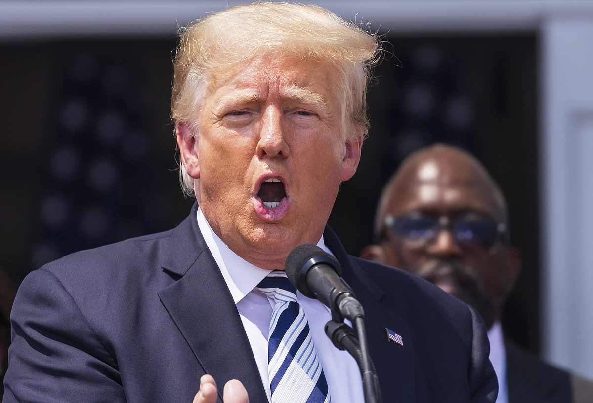 epa09329151 Former US President Donald J. Trump speaks during a press conference at Trump National Golf Club Bedminster in Bedminster, New Jersey, USA, 07 July 2021. At the event, Trump announced plans to file a class action lawsuit against Facebook and Twitter for alleged censorship. EPA/JUSTIN LANE