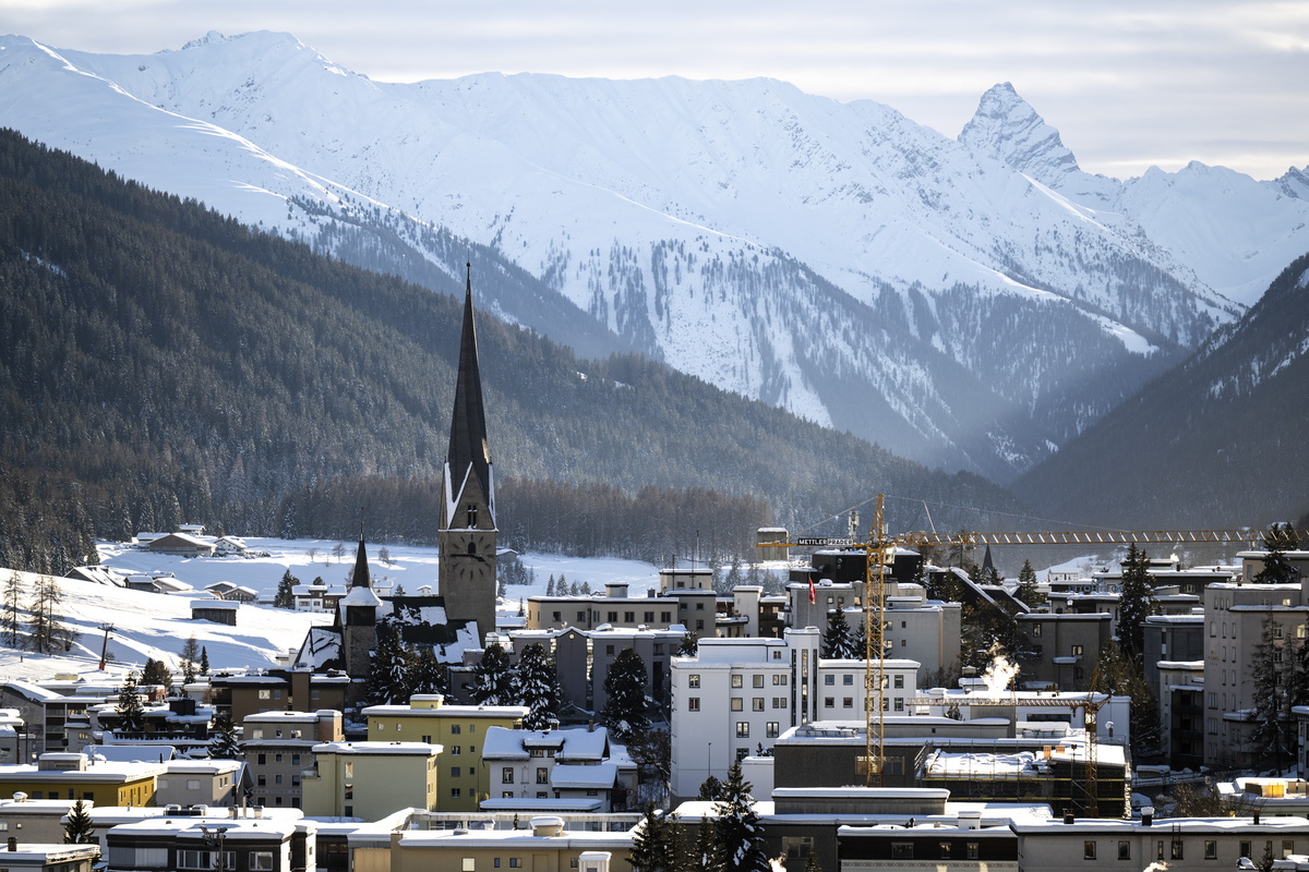 epa11076617 A general view of the town of Davos on the eve of the 54th annual meeting of the World Economic Forum (WEF), in Davos, Switzerland, 14 January 2024. The meeting brings together entrepreneurs, scientists, corporate and political leaders in Davos under the topic 'Rebuilding Trust' from 15 to 19 January. EPA/GIAN EHRENZELLER