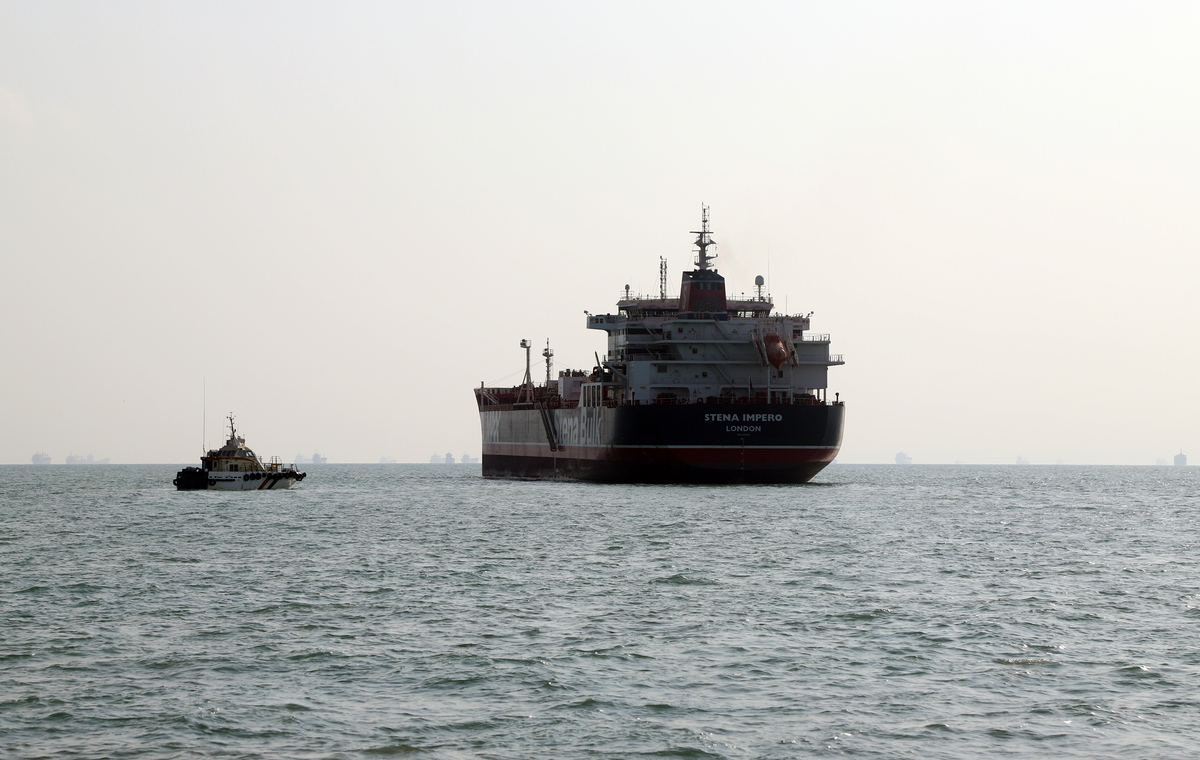 epa07875065 The British flagged oil tanker Stena Impero vessel, sailing from Bandar Abbas, Iran, in route to Dubai after being released by Iranian officials, 27 September 2019. The British-flagged merchant vessel Stena Impero is en route to Dubai after finally being released by Iranian authorities this morning. Iranian Revolutionary Guard Corps (IRGC) claims to have seized Stena Impero at the Strait of Hormuz with 23 crew on board on 19 July 2019. EPA/MEHDI DEHDAR