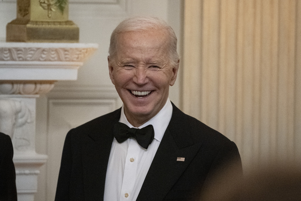 epa11179496 US President Joe Biden arrives before welcoming governors and their spouses for a black-tie dinner during the National Governors Association annual meeting at the White House in Washington, DC, USA, 24 February 2024. EPA/Chris Kleponis / POOL