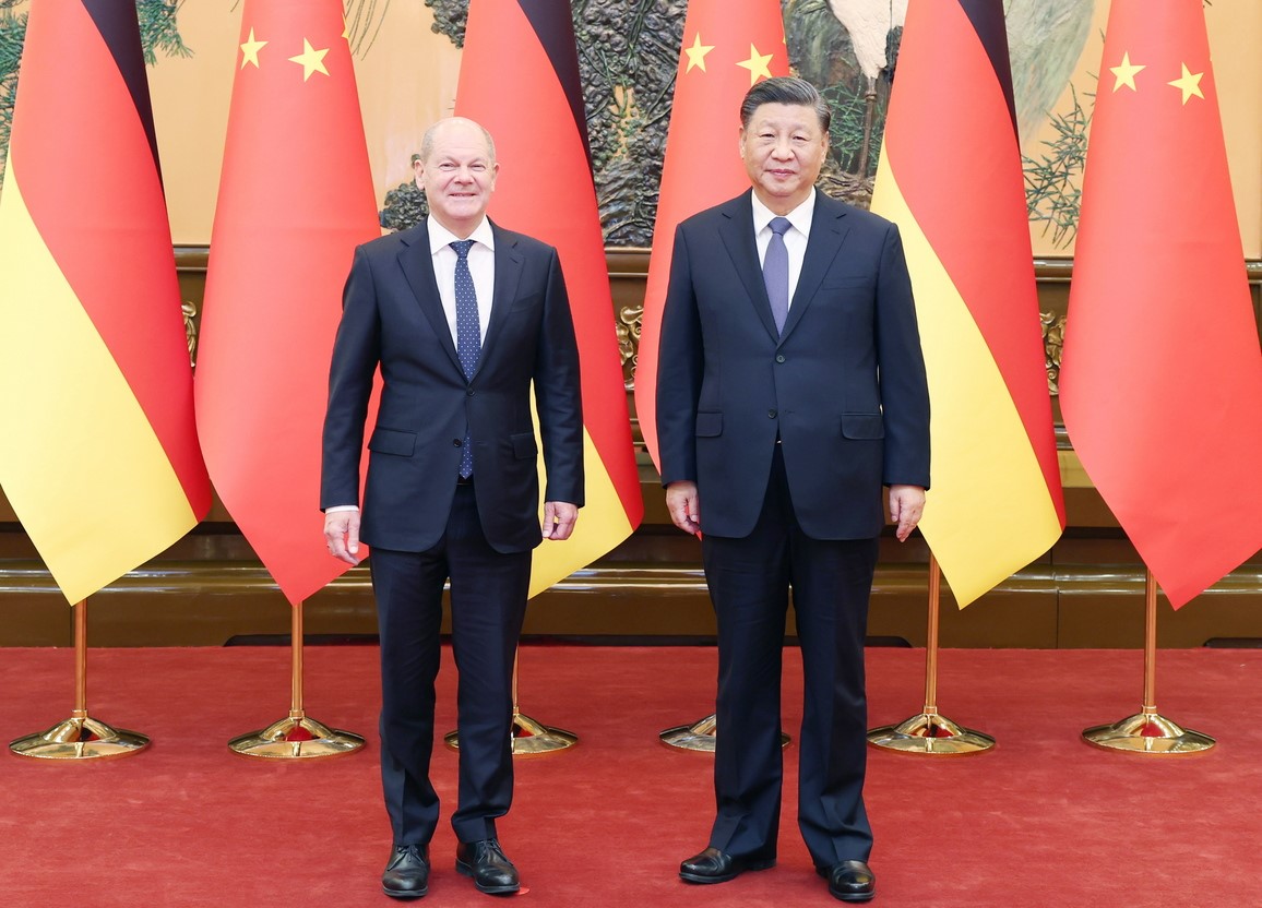 Ο Κινέζος πρόεδρος διαβεβαίωσε πως η επίσκεψη του κ. Σολτς «ενισχύει την πρακτική συνεργασία» της Κίνας με τη Γερμανία, μετέδωσε το κινεζικό κρατικό τηλεοπτικό δίκτυο CCTV. Εξέφρασε την ελπίδα πως το Βερολίνο και το Πεκίνο θα παραμερίσουν τις διαφορές τους, ότι οι δύο πλευρές θα αντιμετωπίσουν η μια την άλλη με αμοιβαίο σεβασμό και θα αναζητήσουν πεδία συνεργασίας καθώς η διεθνής κατάσταση είναι «περίπλοκη και μεταβαλλόμενη», ο κόσμος ζει περίοδο «αλλαγών και χάους».