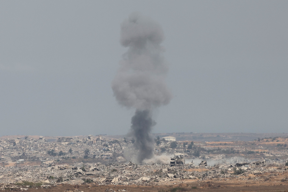 epa12294748 Smoke rises from destroyed buildings following an Israeli airstrike inside Gaza, as seen from the Israeli side, near the border with Gaza Strip, in southern Israel, 12 August 2025. Over 61,400 Palestinians have been killed in the Gaza Strip since October 2023, according to the Palestinian Ministry of Health, and about 1,200 Israelis have been killed since the launch of an Israeli military campaign in response to a cross-border attack by Hamas on 07 October 2023 EPA/ABIR SULTAN