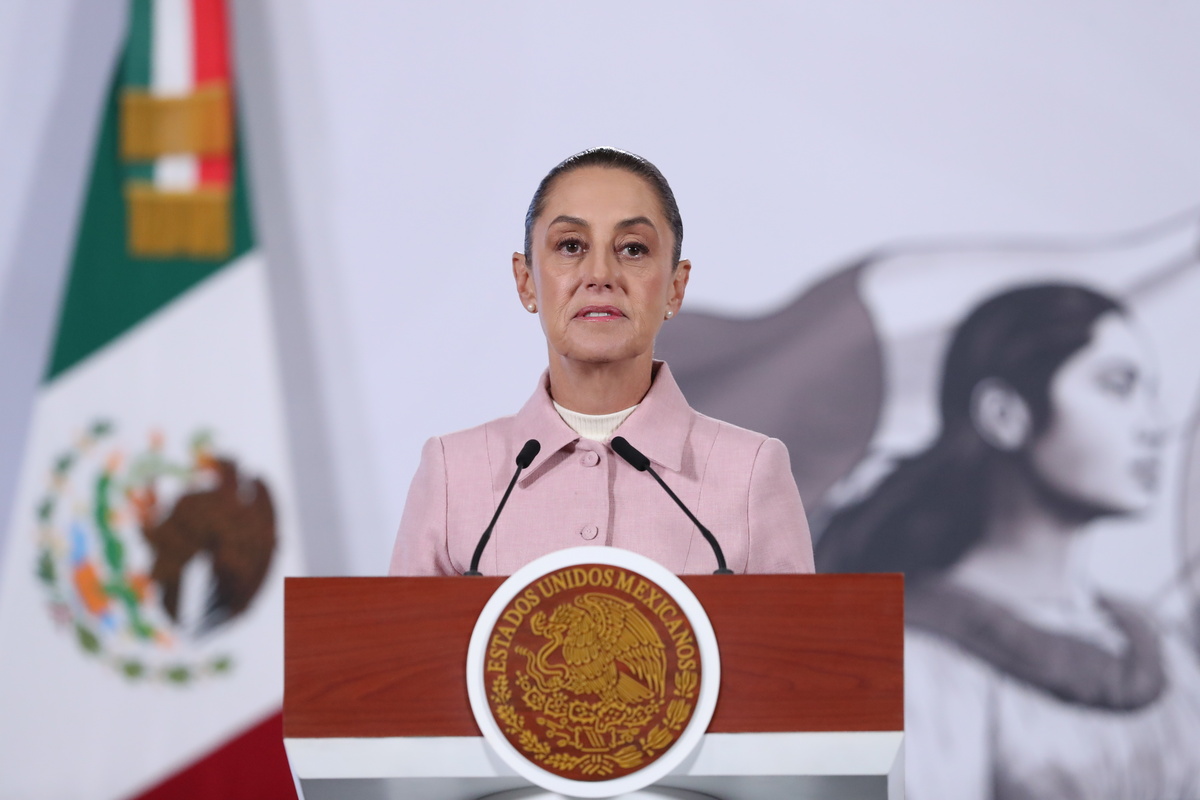 epa12720414 Mexican President Claudia Sheinbaum speaks at a press conference at the National Palace in Mexico City, Mexico, 09 February 2026. EPA/MARIO GUZMAN