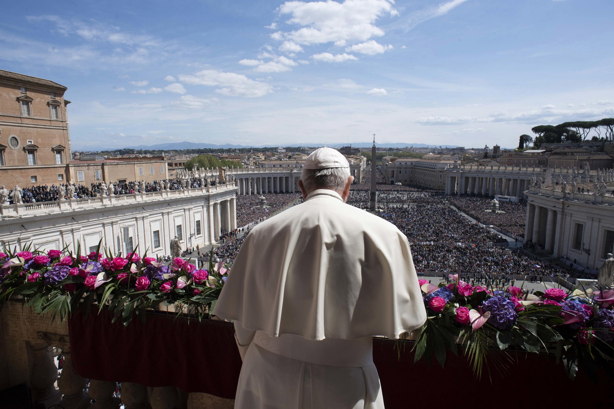 epa09894374 A handout picture provided by the Vatican Media Press Office shows Pope Francis during the Easter Mass and Urbi et Orbi blessing in Saint Peter's square, Vatican City, 17 April 2022. EPA/VATICAN MEDIA HANDOUT HANDOUT EDITORIAL USE ONLY/NO SALES