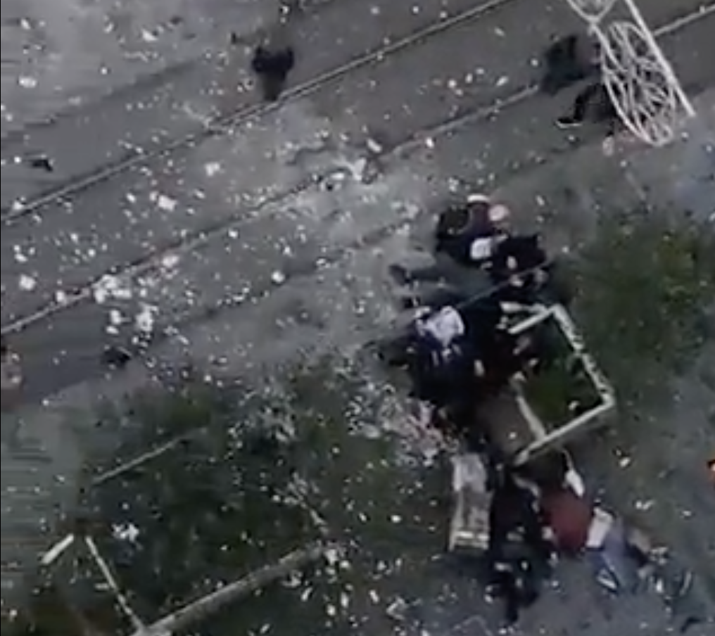 Σε άλλα πλάνα, φαίνονται άνθρωποι να έχουν πέσει στο έδαφος, αρκετοί εκ των οποίων έχουν τραυματιστεί σοβαρά.
