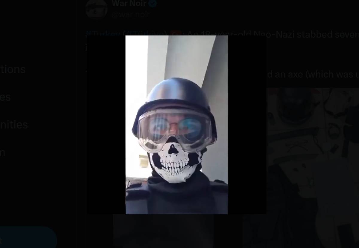 «Ο δράστης έφερε περιβολή παρόμοια με χαρακτήρα βιντεοπαιγνιδιού, τσεκούρι περασμένο στη μέση, αλεξίσφαιρο γιλέκο, κράνος και μάσκα», ανέφερε ο ειδησεογραφικός ιστότοπος Eskişehir Durum.