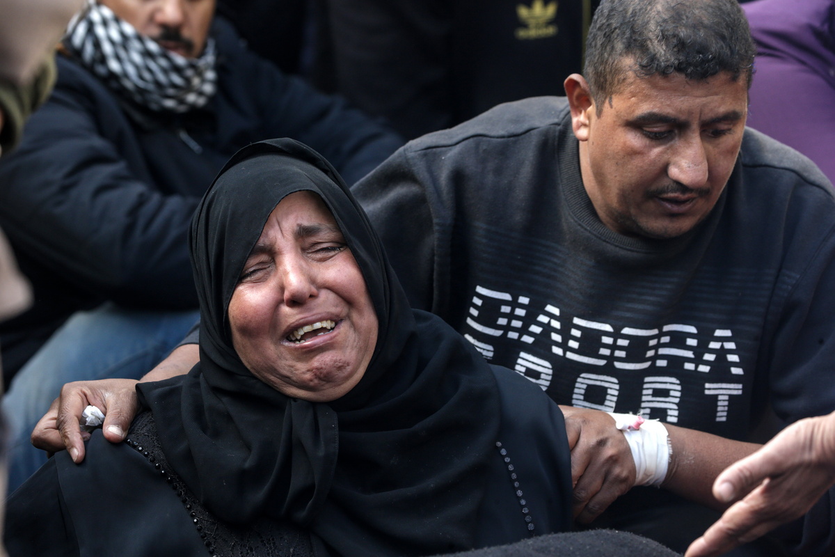 epa11169357 A Palestinian woman mourns near the bodies of a Palestinian family following Israeli air strikes in the town of Deir al-Balah, central Gaza Strip, 21 February 2024. According to the Palestinian Ministry of Health, more than 25 members of a Palestinian family were killed following Israeli air strikes. More than 29,100 Palestinians and over 1,300 Israelis have been killed, according to the Palestinian Health Ministry and the Israel Defense Forces (IDF), since Hamas militants launched an attack against Israel from the Gaza Strip on 07 October 2023, and the Israeli operations in Gaza and the West Bank which followed it. EPA/MOHAMMED SABER