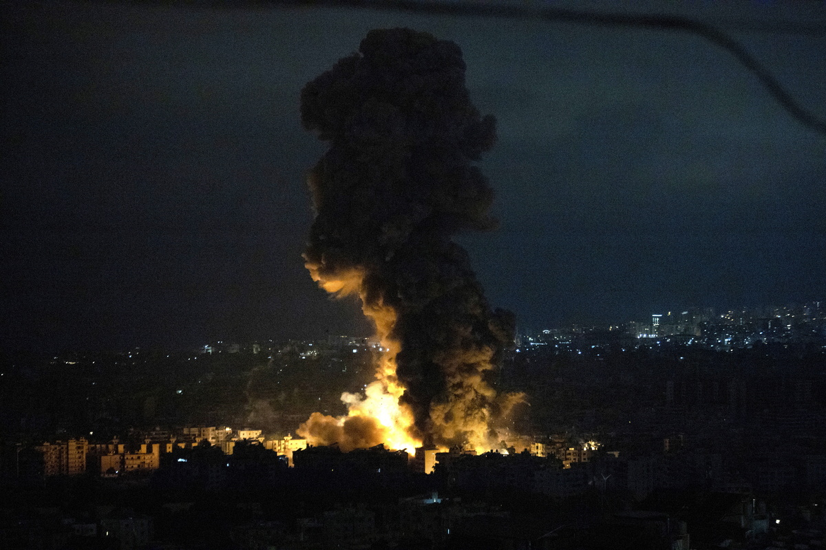 epa11646824 Smoke rises as a result of an Israeli airstrike at Dahieh Saint Therese area in the southern suburb of Beirut, Lebanon, early 07 October 2024. Lebanese Minister of Health, Firas Abiad, announced on 05 October, that more than 2,000 people have been killed and more than 9,600 others have been injured in Lebanon since the beginning of the Israeli-Hezbollah conflict. EPA/STR