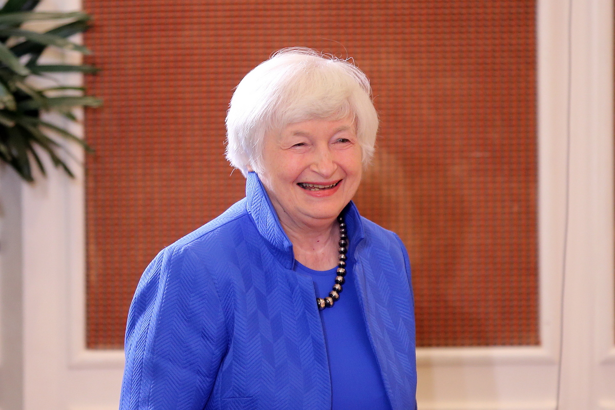 epa10759301 US Secretary of the Treasury Janet Yellen smiles during a meeting with the US-ASEAN Business Council in Hanoi, Vietnam, 21 July 2023. Yellen is on a three-day working visit to Vietnam, from 19 to 21 July, to discuss bilateral economic relations and regional affairs EPA/LUONG THAI LINH