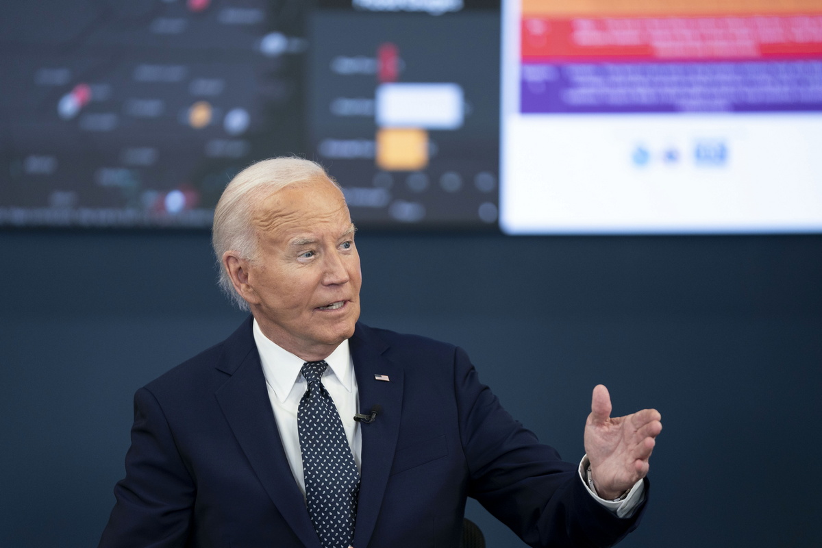 epa11453415 US President Joe Biden delivers remarks after receiving an operational briefing on extreme weather at the D.C. Emergency Operations Center in Washington, DC, USA, 02 July 2024. EPA/BONNIE CASH / POOL