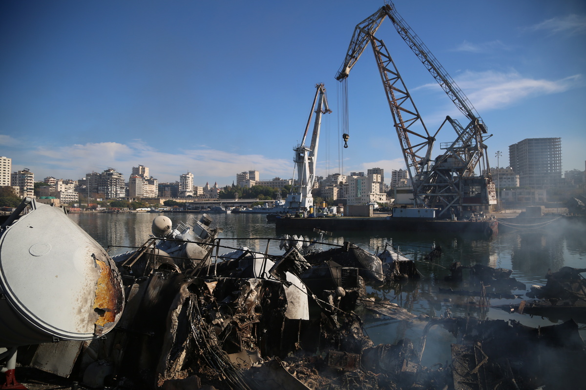 epa11768833 Damage at Latakia port after a reported Israeli airstrike targeting the harbor, Latakia, Syria, 10 December 2024. Several airstrikes were reportedly carried out by the Israeli armed forces targeting weapons facilities and military airports following the ousting of Syrian President Bashar al-Assad on 08 December. EPA/BILAL AL HAMMOUD
