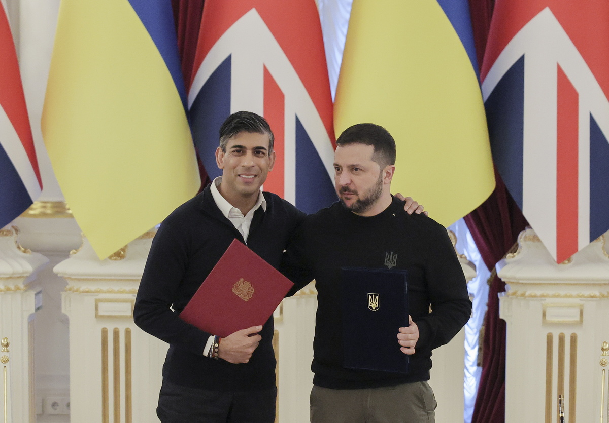 Ο Ουκρανός πρόεδρος Βολοντίμιρ Ζελένσκι και ο Βρετανός πρωθυπουργός Ρίσι Σούνακ υπέγραψαν σήμερα μια συμφωνία για την ασφάλεια μεταξύ των δύο χωρών στο Κίεβο.