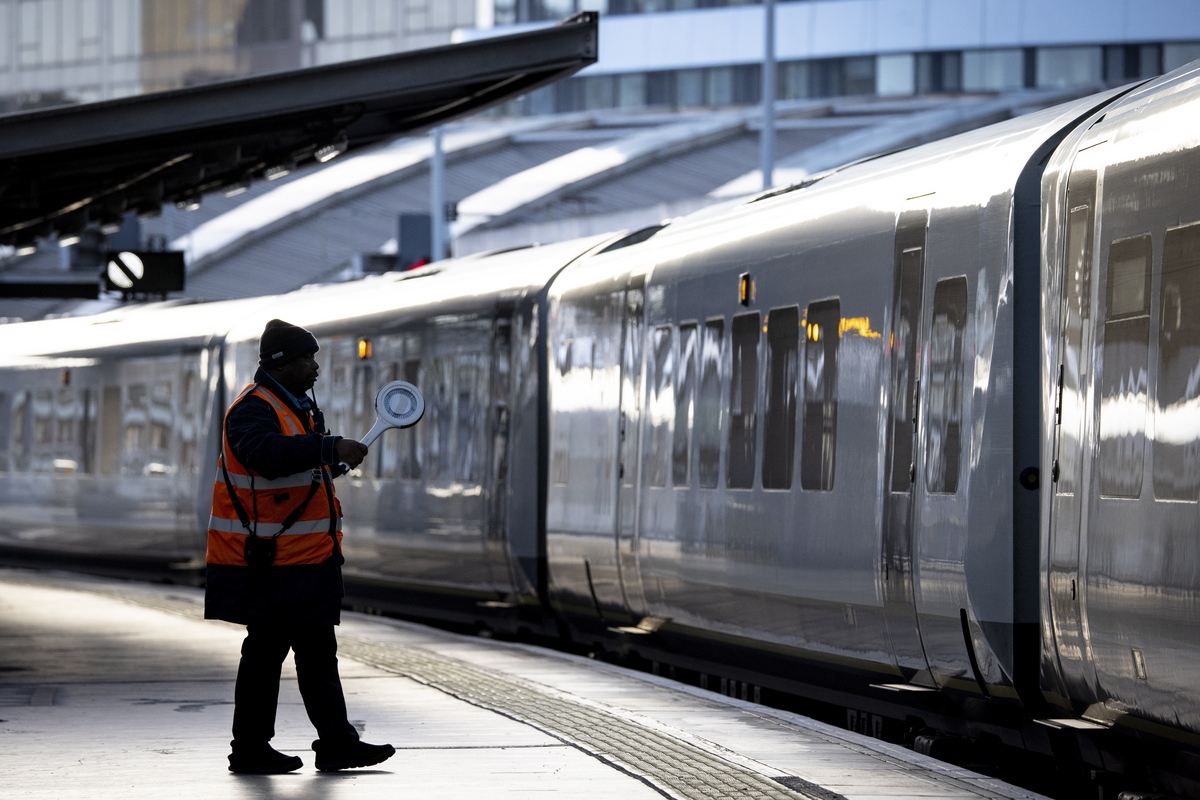 epa10327871 A member of staff works on a platform at Waterloo Station in London, Britain, 25 November 2022. Industrial strike action called by the ASLEF union representing train drivers will go ahead on 26 November 2022 in a dispute over pay and will affect the service on 11 British train companies. EPA/TOLGA AKMEN
