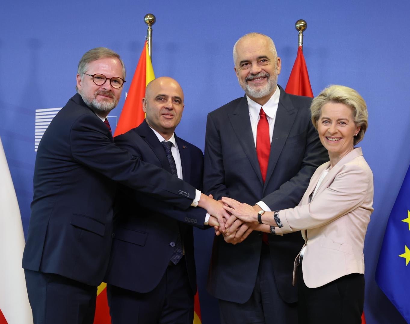 Η Ευρωπαϊκή Ενωση ξεκίνησε τις ενταξιακές διαπραγματεύσεις με την Βόρεια Μακεδονία και την Αλβανία, ανακοίνωσε η πρόεδρος της Ευρωπαϊκής Επιτροπής Ούρσουλα φον ντερ Λάιεν.