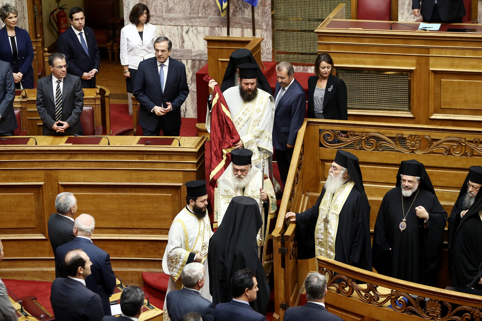 Σήμερα, πουρνό πουρνό, στις 11 το πρωί πραγματοποιήθηκε ο αγιασμός στη Βουλή. Όλοι ήταν εκεί γιατί ξεκινάνε τα μαθήματα. Πρώτο τεστ η ψήφος εμπιστοσύνης στην κυβέρνηση την επόμενη εβδομάδα.