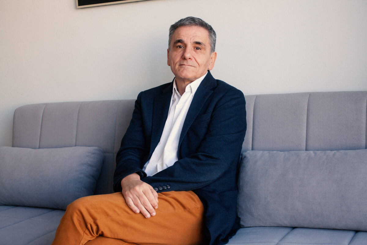 Το κόκκινο σακίδιο που πηγαινοερχόταν μεταξύ Αθήνας και Θεσμών έγινε στο μεταξύ και τίτλος ενός εξαιρετικά ενδιαφέροντος και ειλικρινούς βιβλίου του (από τις πολύτιμες εκδόσεις «Πόλις»). Έχουν περάσει τέσσερα χρόνια περίπου, έχει μόλις εκδοθεί και ο συλλογικός τόμος «Με την πλάτη στον τοίχο-Διαπραγματεύσεις για την Οικονομία και την Κοινωνία/2015-2019» (εκδόσεις «Θεμέλιο») και συναντώ τον Ευκλείδη Τσακαλώτο ξανά για πρώτη φορά ζωντανά, από την περίοδο της «Αριστερής παρένθεσης», κατά τη ΝΔ, τυχαία, χωρίς το κόκκινο σακίδιο, στην Εθνική Λυρική Σκηνή. Στο διάλειμμα του μιούζικαλ των Ρένου Χαραλαμπίδη και Παναγιώτη Καλατζόπουλου «Φτηνά Τσιγάρα». Εκπλήσσομαι με την επιλογή της εξόδου του. Του εκφράζω αμέσως το αίτημα για μια συνέντευξη. Δέχεται, ευγενέστατος.