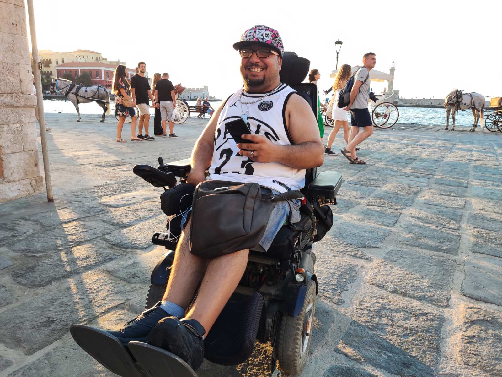 Η συζήτησή μας φτάνει στο επίμαχο ζήτημα της προσβασιμότητας στην πόλη. Όπως με πληροφορεί ο Μάριος, η πρόσβαση στο Παλιό Λιμάνι όπου παίζει μουσική, είναι δύσκολη, καθώς εκεί δεν υπάρχουν ράμπες. «Ακόμη και στον χώρο της εστίασης, παρ’ όλο που τα μαγαζιά διατείνονται πως δέχονται παιδιά με ειδικές ανάγκες, δεν παρέχουν τις κατάλληλες συνθήκες πρόσβασης. Μπορεί για παράδειγμα να υπάρχουν τουαλέτες για ΑΜΕΑ, χωρίς ωστόσο να υπάρχει ράμπα για να μπορέσει το άτομο να μπει στον χώρο του μαγαζιού. Βάσει νόμου, τα μεγάλα μαγαζιά πρέπει να διαθέτουν και τουαλέτες κατάλληλες για αμαξίδιο και να διαθέτουν ειδική ράμπα. Στα Χανιά γνωρίζω μόνο ένα μαγαζί που πληροί αυτές τις προϋποθέσεις. Ακόμη, υπάρχουν μαγαζιά που τοποθετούν στα πεζοδρόμια καρέκλες και τραπέζια, με αποτέλεσμα να δυσκολεύουν τη μετακίνησή μας. Ας μην μιλήσουμε για τα ΜΜΜ. Δεν μπορώ να μπω σε λεωφορείο, αναγκάζομαι να μετακινούμαι στον δρόμο μέσα στη νύχτα με το αμαξίδιο».