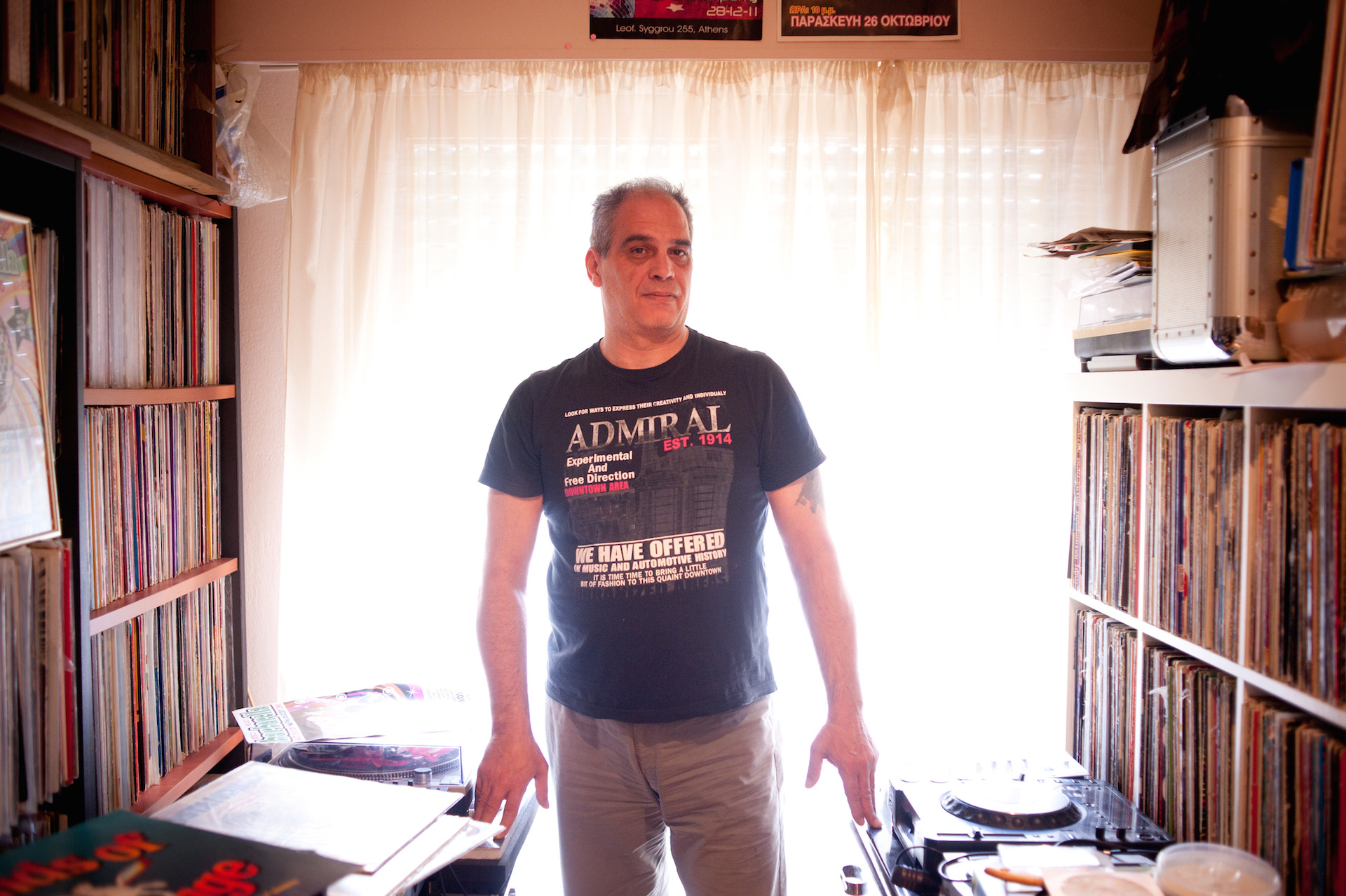 Στο σπίτι μου στο Φάληρο, έχω τους δίσκους που αγαπώ πιο πολύ. Επειδή δεν φτάνει ο χώρος, τους έχω μοιράσει σε τρία σπίτια! Έχω Part 1, Part 2, Part 3 και συνεχίζω να αγοράζω ακόμα και σήμερα. Δεν μπορώ να μετρήσω πόσους έχω. Πρέπει να ‘ναι 50-60.000. Παρόλα αυτά, όταν με ρωτάνε λέω ένα νουμεράκι χαμηλών τόνων, ας πούμε 20.000 – για να μη γίνεται όλη η περαιτέρω συζήτηση. Ανάμεσά τους είναι και πολλά σπάνια κομμάτια που συνήθως δεν τα παίζω. Τα έχω σε μήτρες, γυρισμένα σε cd, αλλά ποτέ σε mp3 γιατί πάρχει μεγάλη διαφορά στις συχνότητες – στο mp3 δεν υπάρχουν καθόλου μπάσα. Επίσης, έχουν περάσει από τα χέρια μου και 3-4 χρυσά επετειακά πικάπ της Technics που σήμερα κοστίζουν μέχρι 12.000 ευρώ. Πολλές φορές που ανεβάζω όλα αυτά τα στοιχεία στο ίντερνετ, νομίζουν ότι το κάνω για να πουλάω μούρη. Εγώ ανεβάζω πράγματα για να μαθαίνουν οι νεότεροι. Ξέρεις, μερικές φορές είναι όπως με τις λέξεις που συχνά παρερμηνεύεται το νόημά τους.
