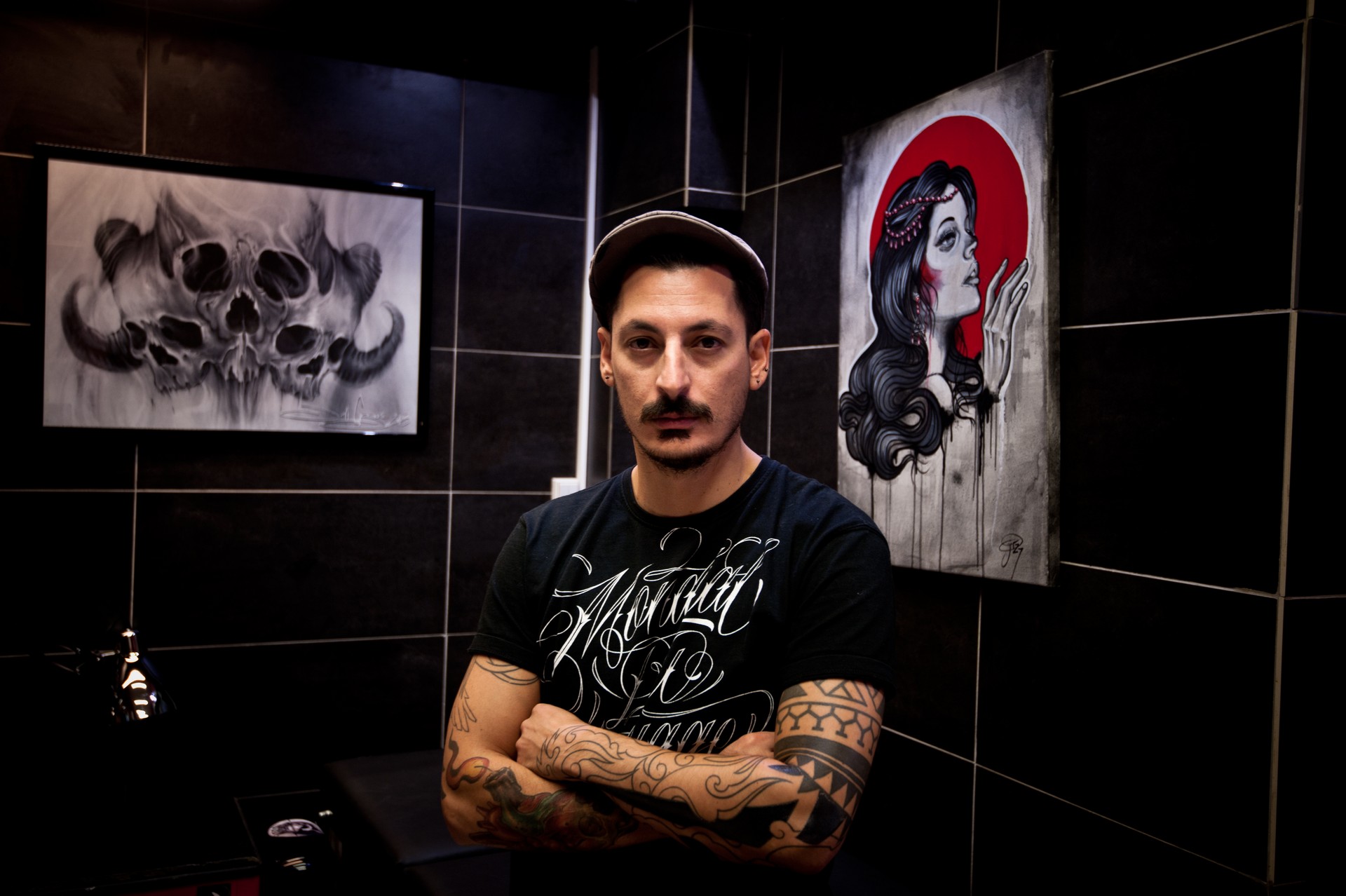 Χτύπησε το πρώτο του μόλις έκλεισε τα 23, τότε που σπούδαζε γραφιστική και τα tattoos απείχαν πολύ από το να αφορούν δυνητικά τους πάντες, όπως σήμερα. «Ρωτούσα, προσπαθούσα να μάθω αλλά ήταν διαφορετικές εποχές. Πριν από περίπου 10 χρόνια, οι πιο παλιοί δεν ήταν τόσο δεκτικοί να μοιραστούν πληροφορίες, ο χώρος ήταν πιο “κλειστός”». Κοινώς, ελλείψει google, η προσωπική επαφή τότε ήταν βασική προϋπόθεση για τον κάθε επίδοξο «τατουατζή». Και η εξάσκηση πρέπει να είναι συνεχής.