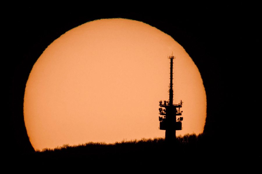 epa05689806 A telecommunication tower is backdropped by the rising sun as seen from the vicinity of Batonyterenye, 96 kms northeast of Budapest, Hungary, 28 December 2016. EPA/PETER KOMKA HUNGARY OUT