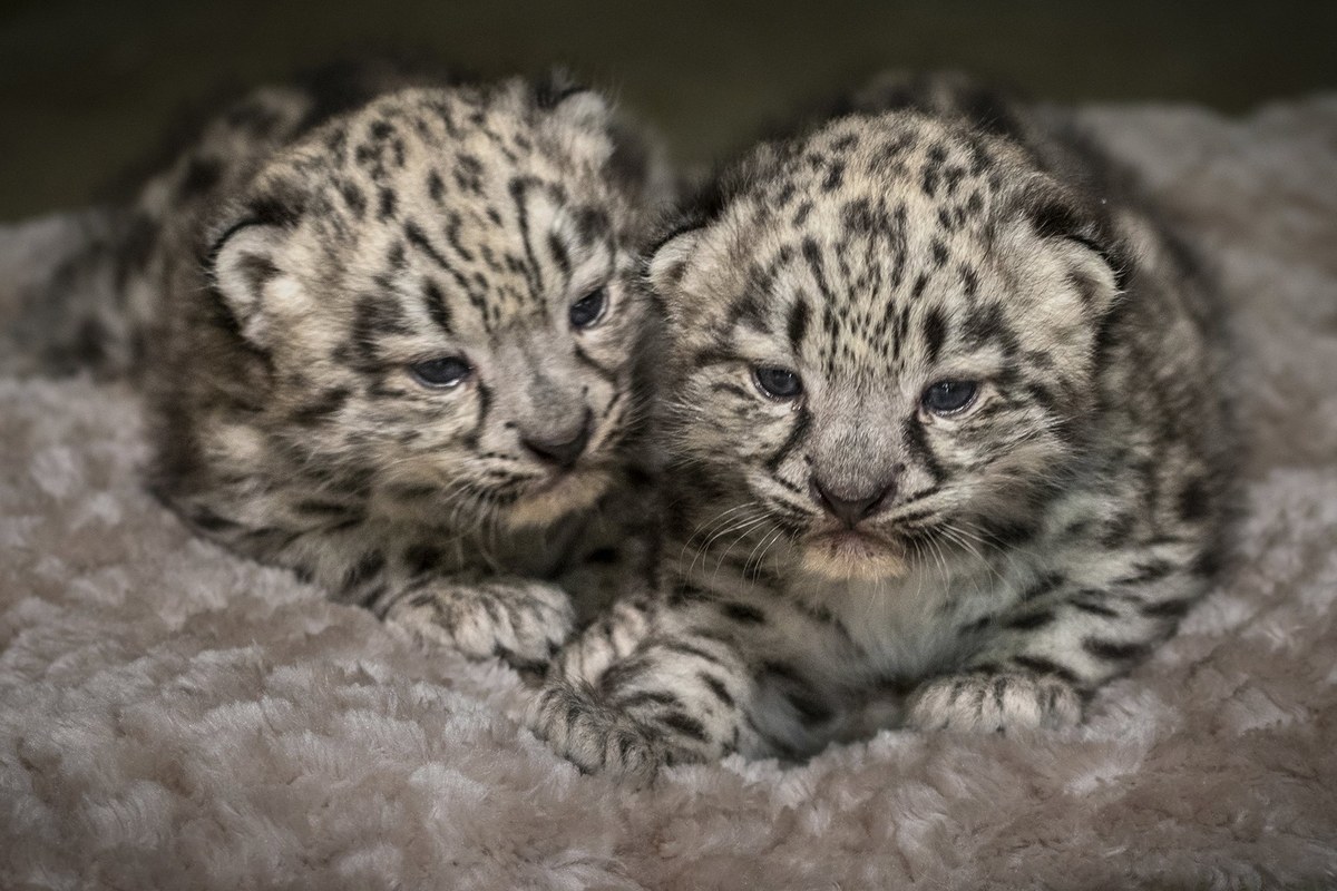 epa06201253 A handout photo made available by the Los Angeles Zoo shows snow leopard cubs playing at the Los Angeles Zoo in Los Angeles, California, USA, 06 June 2017 (issued 13 September 2017). The five-month old cubs were presented to the public on 12 September 2017. Snow leopards, which live in Central Asia, are extremely rare and endangered with only 2,000 to 7,000 believed to be left in the wild. EPA/LOS ANGELES ZOO HANDOUT HANDOUT EDITORIAL USE ONLY/NO SALES