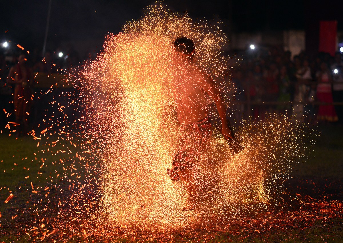 Ένας Ινδός ιερέας τρέχει πάνω από καυτά κάρβουνα στο φεστιβάλ Baikho