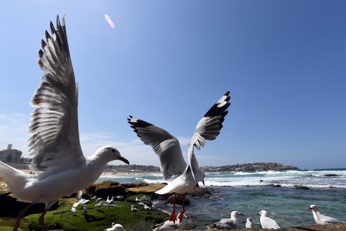 epa06239472 Seagulls are seen at Bondi Beach, in Sydney, New South Wales (NSW), Australia, 02 October 2017. The annual State of the Beaches report released on the day, showed 84 percent of monitored swimming sites were considered to have acceptable water quality levels, and 17 estuarine beaches are considered poor. The NSW Environment Minister Gabrielle Upton stated that the water quality monitoring shows that Sydney beach water quality had improved dramatically over the last two decades. EPA/MICK TSIKAS AUSTRALIA AND NEW ZEALAND OUT