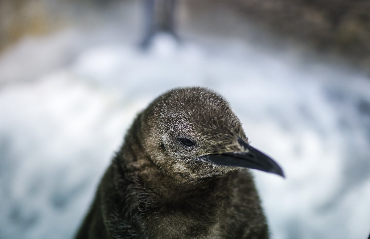 epa06386487 Maru, a King Penguin chick is pictured within its enclosure at the penguin exhibit in the Jurong Bird Park in Singapore, 13 December 2017. Maru was hatched on 10 October and is the first successfully hatched King Penguin chick since 2008. EPA/WALLACE WOON