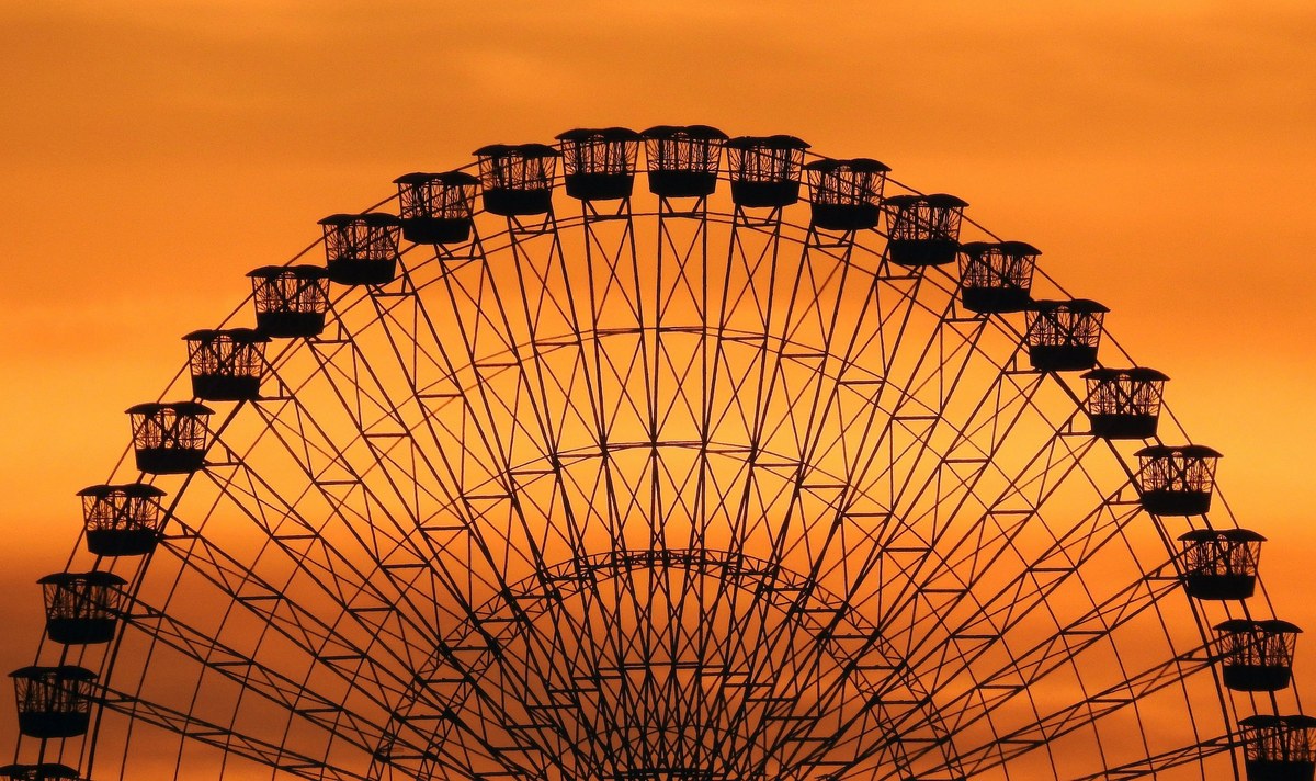 epa06009070 A big wheel turns at sunset in Santiago de Compostela, Galicia, Spain, 03 June 2017. EPA/Lavandeira jr
