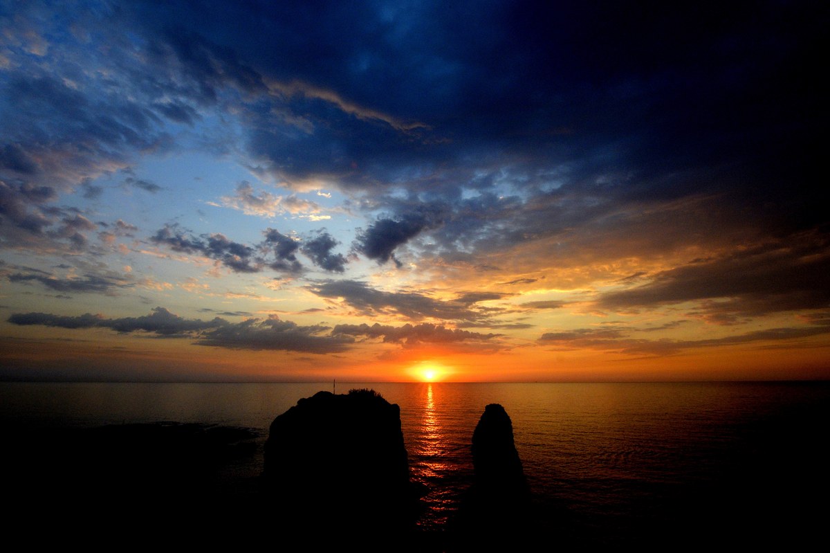 epa06269808 A general view of the sunset overlooking the Pigeon Rocks in Beirut's Raouche district, Lebanon, 16 October 2017. The rocks are a natural landmark of the city and popular among locals and visitors. EPA/WAEL HAMZEH