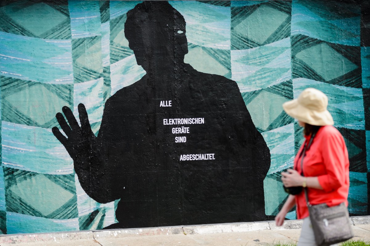 epa06135180 A woman looks at the art installation 'Beyond the Wall' at the West Side Gallery in Berlin, Germany, 10 August 2017. The open-air installation by German-American artist Stefan Roloff combines video footage of recordings of the former border area and portraits of contemporary witnesses from 13 August to 09 November. The West Side Gallery is a section of the Berlin Wall located on the side of the East Side Gallery memorial facing the river Spree. The former East German communist regime started the construction of the Berlin Wall on 13 August 1961, 56 years ago. The Wall came down on 09 November 1989. EPA/JENS SCHLUETER