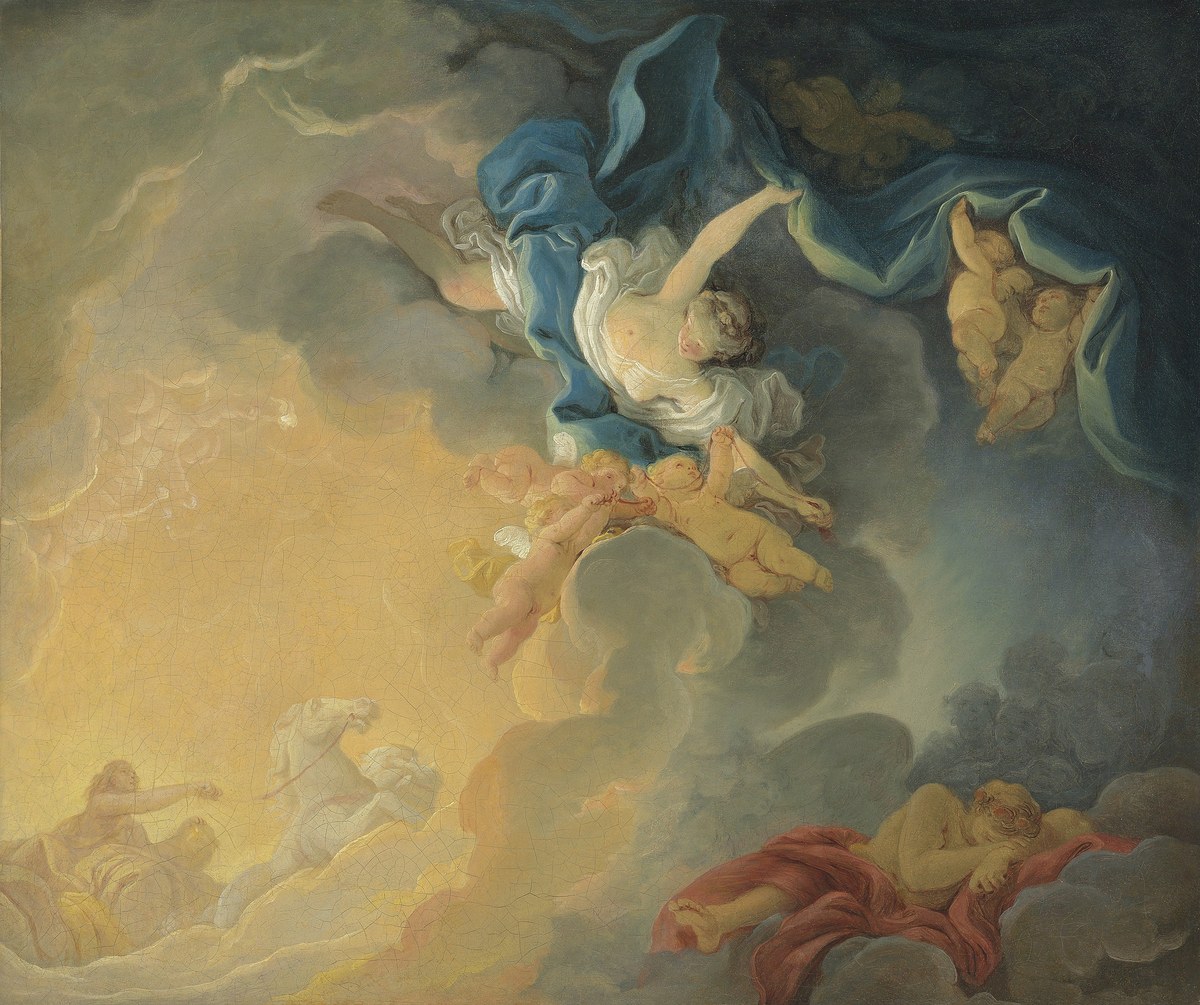 epa06015198 A handout photo made available by Christies auction house shows the painting from Jean-Honoré Fragonard’s bozzetto, The goddess Aurora triumphs over night, announcing Apollo in his chariot, while Morpheus sleeps that belonged to Countess Raine Spencer. The item will be sold in a auction in July in London. Countess Raine Spencer was the stepmother of Princess Diana. EPA/HANDOUT HANDOUT EDITORIAL USE ONLY/NO SALES