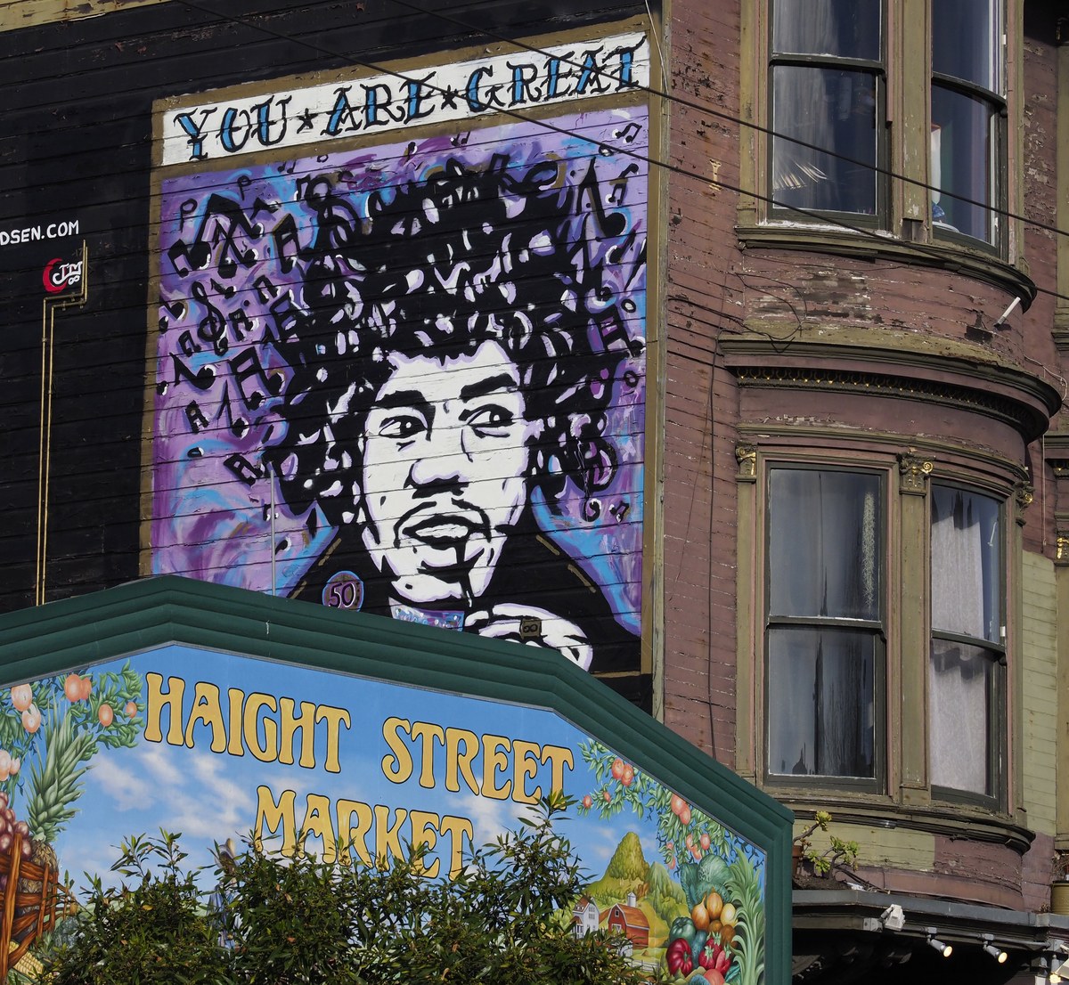 Μια τοιχογραφία του αείμνηστου αμερικανικού κιθαρίστα Jimi Hendrix στην οδό Haight στο Σαν Φρανσίσκο της Καλιφόρνια