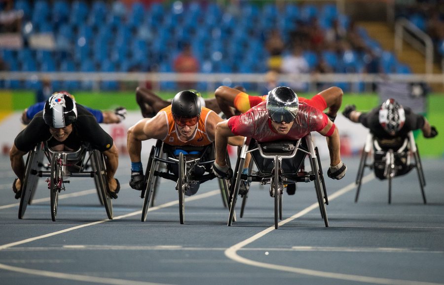 Ο Gyu Dae Kim της Κορέας, ο Kenny van Weeghel από την Ολλανδία, και ο Marcel Hug από Ελβετία προπορίζονται στο Heat 2 στα 800 μέτρα ανδρών. PHOTO: SIMON BRUTY