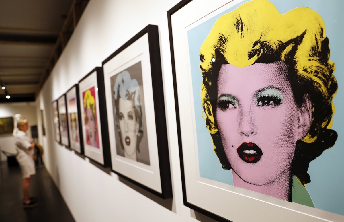 epa06039336 A visitor observes a group of screenprints entitled 'Kate Moss' by British Banksy during the exhibition 'The Art of Banksy' in Berlin, Germany, 20 June 2017. Original canvasses, paintings, sculptures and a interactive storytelling show the career of this unknown street artist. All pieces come from private collectors and the curator's Steve Lazarides collection. The exhibition runs from 15 June to 15 September 2017. EPA/FELIPE TRUEBA