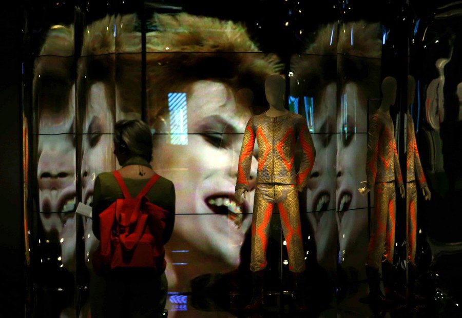 epaselect epa05986371 A woman visits the new exhibition 'David Bowie Is' in Barcelona, Spain, 24 May 2017. The exhibition displays 300 objects related to the late British musician such as original costumes, photographs, music videos, instruments and albums. The exhibition will be open to public on 25 May at the Design Museum. EPA/TONI ALBIR