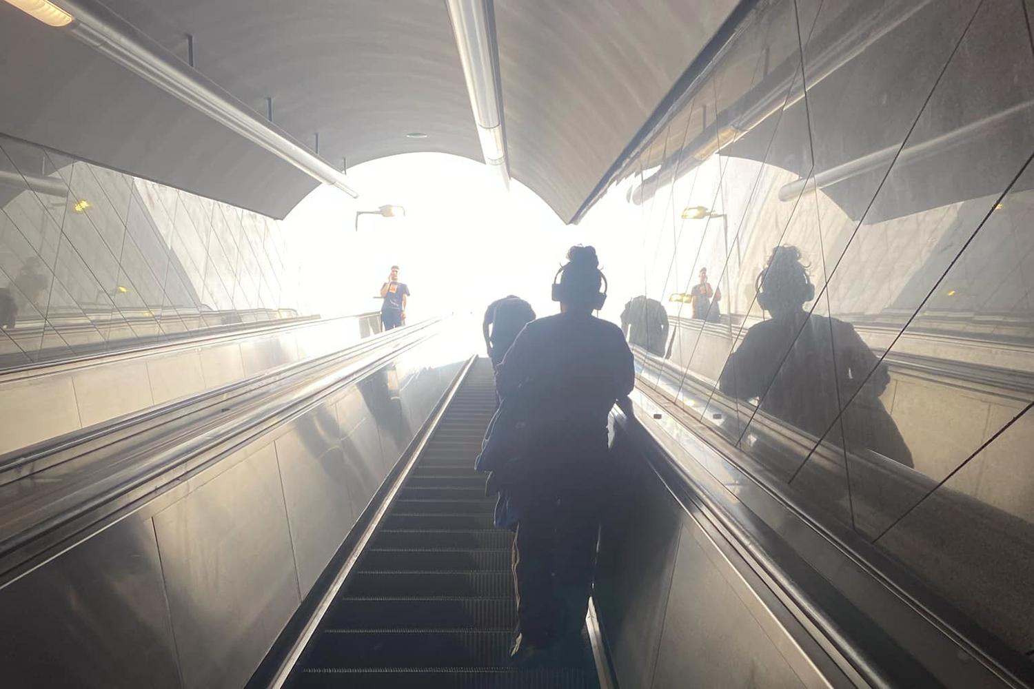 Το Mετρό του Βορρά έχει τζαμαρίες ασφαλείας όπως Λονδίνο – πόσο τις αγαπώ γι’ αυτό. Και μια κυρία που μας λέει κάθε τόσο: «Ντόρς όπεν ον δε λεφτ». Με τονισμό ιδιαιτέρως στον «ον». Το σταθερό «δε λεφτ» άστο, μετά από τόση δεξιά χαρά για το νέο επίτευγμα, ακούγεται σαν χαριτωμένη ειρωνεία. Αποφασίζω να κάνω τη διαδρομή σε όλη της την εξωστρέφεια. Αποφασίζω να πάω στον Σιδηροδρομικό Σταθμό και μετά τέρμα στη Νέα Ελβετία. Το κάνω. Μετράω. Δεκαοχτώ λεπτά. Ψάχνω φάκελο στο κινητό με μουσική. Θέλω να κάτσω στο παράθυρο, ον δε λεφτ και να χαζεύω τους ανθρώπους που μπαινοβγαίνουν. Διαλέγω τον φάκελο με τον κωδικό pop ballads που σφάζει κατευθείαν στα μέσα σου. Διαλέγει μόνο του τη σειρά. Ακούω: Sleeping At Last/ All Through the Night, Lana Del Rey / Candy Necklace, Sally Dige / Our Secret, Billie Eilish / Everything I wanted/, FGTH / The Power of Love. Παρατηρώ. Κυρίες με ψώνια. Αγόρια με ακουστικά – τι να ακούνε κι αυτοί, έτσι όπως κουνάνε ρυθμικά τα πόδια τους; Κορίτσια που μιλούν με κορίτσια για αγόρια και για άλλα κορίτσια. Ζευγάρια κάθε ηλικίας. Παιδιά που κρέμονται από τις στήλες – σαν παιδική χαρά χωρίς ήχο. Είναι Σάββατο μεσημέρι και υπάρχει άνεση. Η πόλη έξω βράζει. Από ήλιο και κίνηση. Αναρωτιέμαι, αν δεν ήμουν εδώ και ήμουν στην Αθήνα, αν μια ευθεία ανάμεσα σε Ομόνοια και αρχές Συγγρού ήταν το μόνο υπόγειο τρένο που θα κοσμούσε τις μετακινήσεις μας, θα το διάλεγα σε μια τέτοια μέρα που ο ήλιος σου χαϊδεύει τα μαλλιά; Η θα μου φώναζα όσο πιο δυνατά μπορούσα, περπάτα πόδι μου και άσε τις νέες εμπειρίες για άλλες μέρες; Υποθέτω πως ναι.