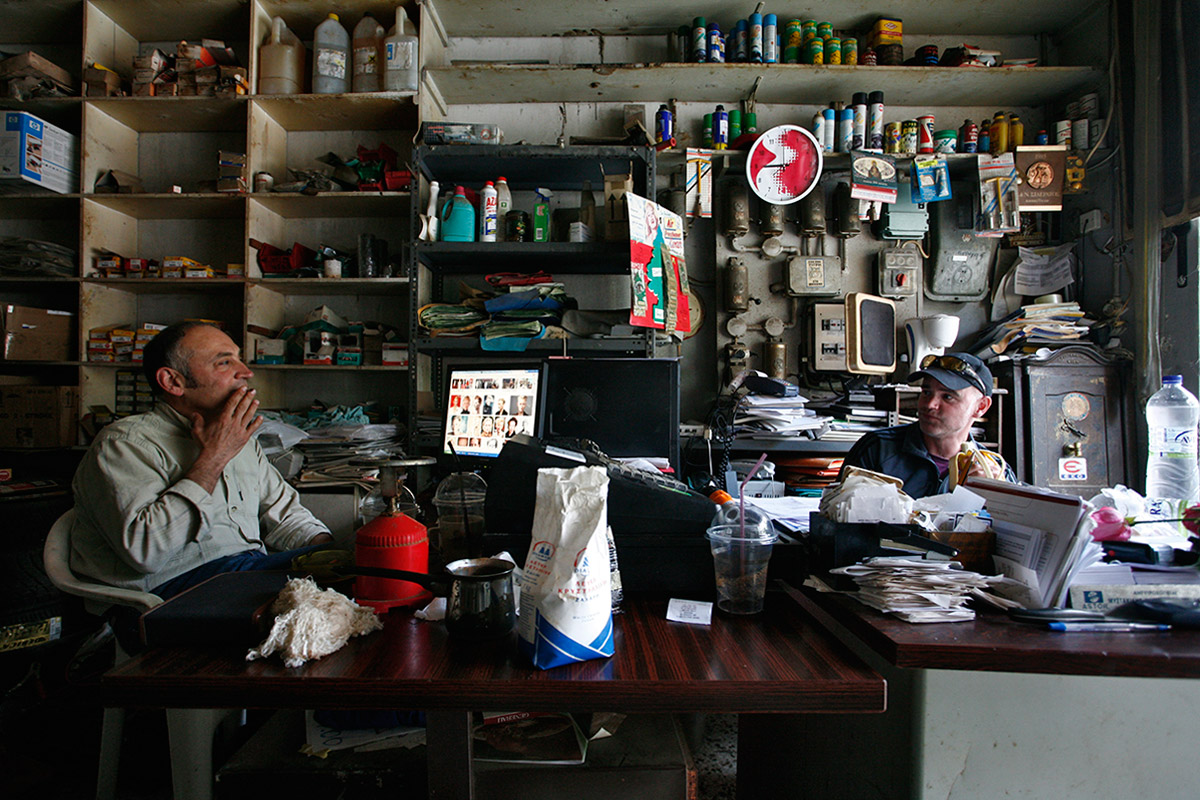 πάνω στο γραφείο ανάμεσα σε φακέλους και τιμολόγια, ξεχωρίζει μια αστυνομική ταυτότητα. «δεν είχε να πληρώσει, τι να’κανα μου χρωστάνε διάφοροι, τρία, πέντε, επτά ευρώ και δεν ξαναπερνάνε. το βενζινάδικο το άνοιξε ο πατέρας μου το εξήντα οκτώ. εγώ το δουλεύω τα τελευταία δεκαπέντε χρόνια. ήμουν φοιτητής στο πολυτεχνείο της πάτρας πολλά χρόνια, δέκα-δώδεκα. έπαιζα και σε θεατρικές ομάδες. μετά γύρισα εδώ, κράτησα το μαγαζί. ανοίγω γύρω στις επτά, φεύγω λίγες ώρες για εξωτερικές δουλειές, επιστρέφω το μεσημέρι και κάθομαι ως το βράδυ.οι καλοί πελάτες είναι αυτοί που κλείνουν τα μαγαζιά, γιατί οι υπερβολικές απαιτήσεις τους σε εμποδίζουν να ασχοληθείς με τον περιστασιακό πελάτη και να αποκτήσεις και με αυτόν μια πιο μόνιμη σχέση, βέβαια όλα αυτά με την κατάσταση που επικρατεί είναι θεωρίες…η κατάσταση σήμερα θυμίζει το έργο ‘’περιμένοντας τον γκοντό’’ του μπέκετ, η καλύτερη παράσταση που έχω παίξει, οι δυο πρωταγωνιστές περιμένουν κάποιον κύριο γκοντό να τους σώσει αλλά αυτός δεν εμφανίζεται ποτέ. και εμείς κάποιον γκοντό περιμένουμε να δώσει λύση και μάλλον δεν μας περνάει από το μυαλό να γίνομε γκοντό του εαυτού μας».