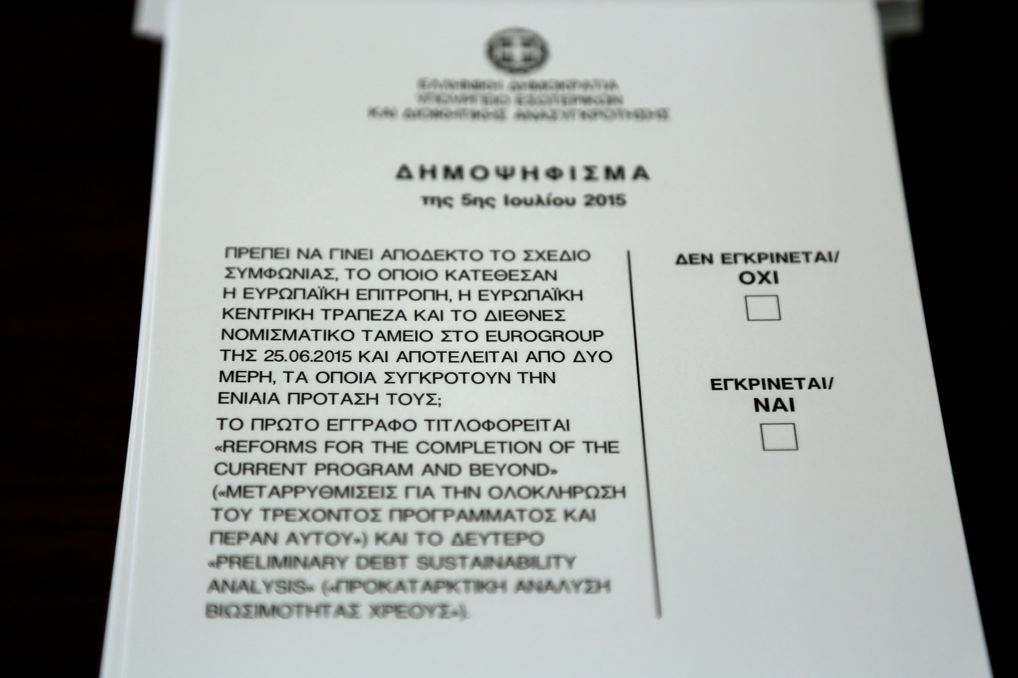 Το δημοψήφισμα του 2015, για τη συμφωνία της Ελληνικής κυβέρνησης με τους θεσμούς ήταν το αποτέλεσμα μιας πολύμηνης διαπραγμάτευσης όταν ο ΣΥΡΙΖΑ ήρθε στην κυβέρνηση με την υπόσχεση για ένα κυβερνητικό πρόγραμμα τελείως διαφορετικό από τις πολιτικές λιτότητας που είχαν εφαρμοστεί στη χώρα από τον Μάιο του 2010 από το πρώτο μνημόνιο.