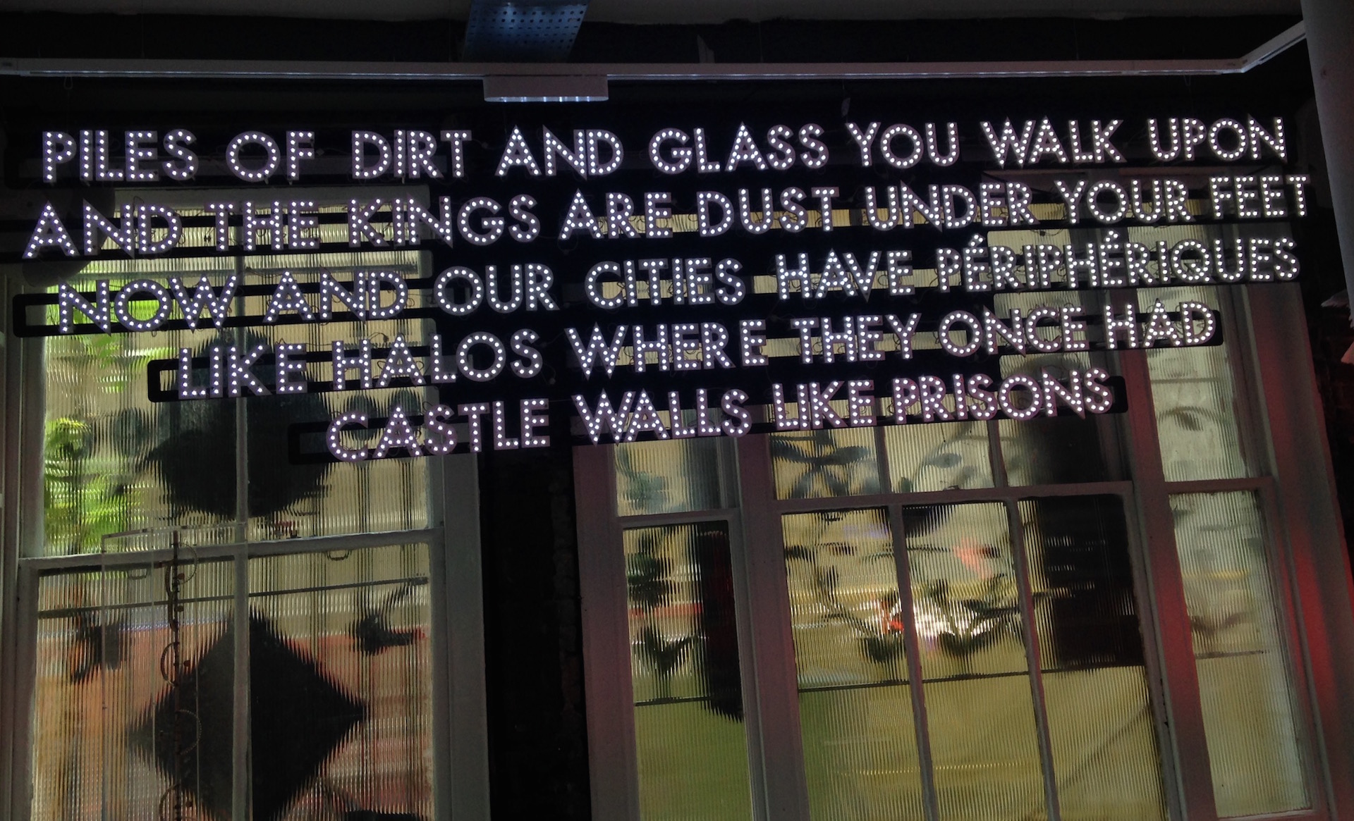 Οταν μπαίνω, Παρασκευή αργά το απόγευμα, με χαιρετά με ένα τεράστιο χαμόγελο μια σωσίας της Rosario Dawson. Ο χώρος δίνει την αίσθηση μιας καλοστημένης, φιλικής κολεκτίβας. Η τωρινή έκθεση City Light …Lay Out Before Us, είναι ένα μείγμα από επινοήσεις διαφόρων καλλιτεχνών που δουλεύουν αποκλειστικά ή έχουν κατά καιρούς δημιουργήσει με φως νέον. Από τον Chris Bracey φυσικά, μέχρι την Tracy Emin, τον Tom Wilkinson και τον Mike Booth, οι κόρες των ματιών καίγονται με τον πλέον αξιοθαύμαστο τρόπο.