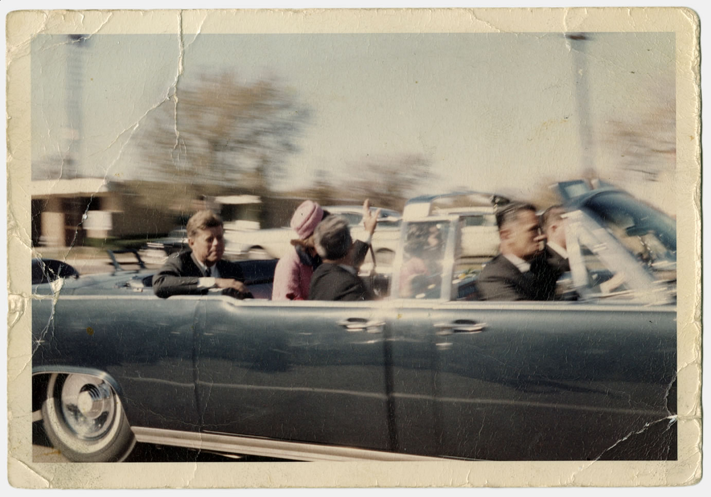 Τις δυο φωτογραφίες του ποστ τις χωρίζουν κάποιες ώρες. Και στις δύο περιπτώσεις ένα χέρι είναι σηκωμένο και συμβολίζει κάτι. Η χαρά της ζωής, το Καινούργιο της δεκαετίας του ’60 που έρχεται, η κομψότητα, η χάρη, το πρόσχαρο πνεύμα των ανθρώπων θα δώσουν τη θέση σε υπερφίαλους όρκους με άθλιους τρόπους και συμπεριφορές. Το Αιματοβαμμένο Σανέλ Ταγέρ (έτσι πέρασε στη συνείδηση -και σωστά- των γυναικών του κόσμου) είναι μια Ιερά Σινδόνη της ποπ κουλτούρας, αναπαυμένο στο κουτί που, πρώτα η μητέρα της Τζάκι παρέλαβε από την ίδια με την ένδειξη «ρούχα φορεμένα την 22η Νοεμβρίου» και, 40 χρόνια μετά (το 2003), η κληρονόμος της απέστειλε στα National Archives με την εντολή να ανοιχτούν 100 χρόνια αργότερα.