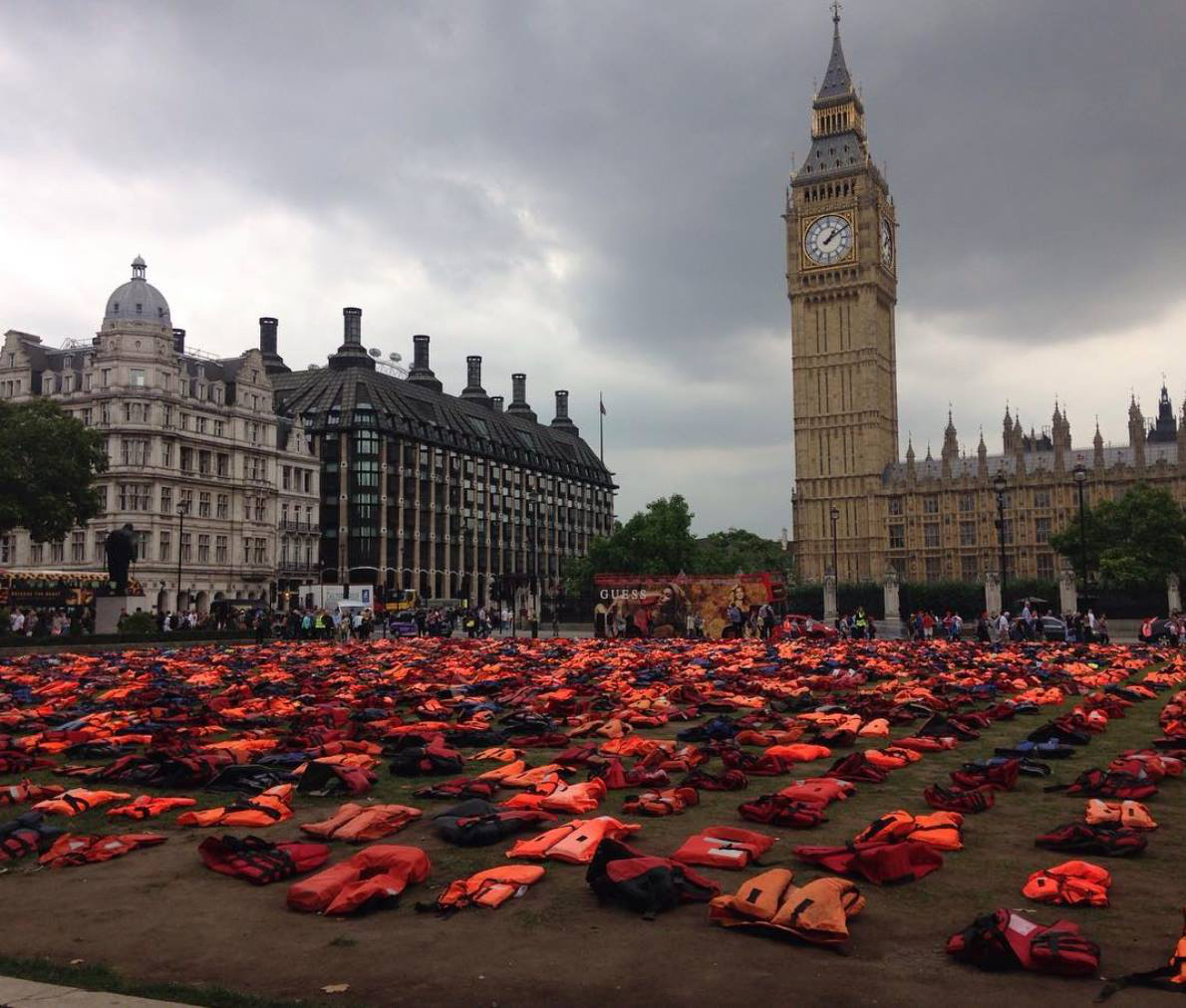 Το project που έχει ανεπίσημα ονομαστεί Graveyard Of Life Jackets, αποτελείται από 2500 σωσίβια ανθρώπων που πνίγηκαν στην προσπάθεια τους να περάσουν στην Ευρώπη από τη Συρία, και κέιτονται άδεια αυτή τη στιγμή πάνω στους κήπους του Parliament Square δίπλα στο άγαλμα του Winston Churchill. Πολλά από αυτά βρέθηκαν σπαρμένα σε παράλια ελληνικών νησίων και μεταφέρθηκαν στο Λονδίνο για τις ανάγκες του installation. Οι διοργανωτές αναφέρουν ότι το ένα τέταρτο από τα σωσίβια είναι παιδικού μεγέθους. Μερικά μάλιστα έχουν ακόμα αυτοκόλλητα με καρτούνς πάνω τους.