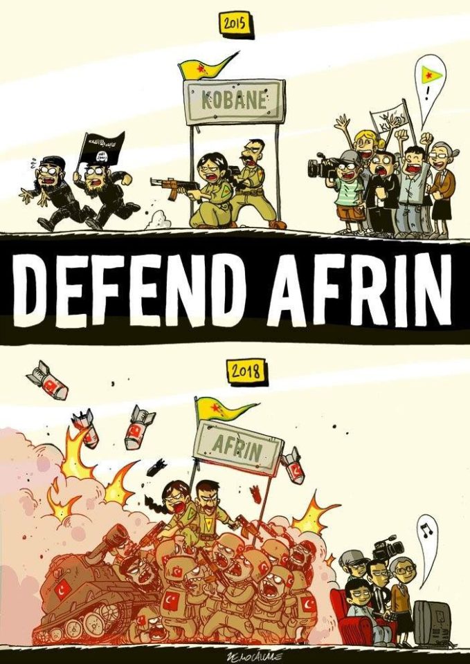 τραγωδία του κουρδικού λαού. Αφού αντιμετώπισαν με επιτυχία το Ισλαμικό Κράτος η διεθνής κοινότητα τους γύρισε για άλλη μια φορά την πλάτη αφήνοντας απερίσπαστο τον Ερντογάν να επιτεθεί στο Αφριν.