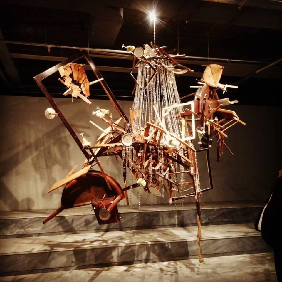 Θυμάμαι ότι τον Γενάρη του ’17 στην πραγματικά σπουδαία έκθεση «Η υπέρβαση της άβυσσος» στο Ωδείο Αθηνών ήταν το έργο της Ιωάννας Πανταζοπούλου που μου είχε τραβήξει την προσοχή. Παρουσίαζε το big bang του οικογενειακού, κυριακάτικου (ή εορταστικού) τραπεζιού. Πιάτα, ποτήρια, μαχαίρια, πιρούνια, καρέκλες αλλά και το ίδιο το τραπέζι στον αέρα και όλα κομμάτια.