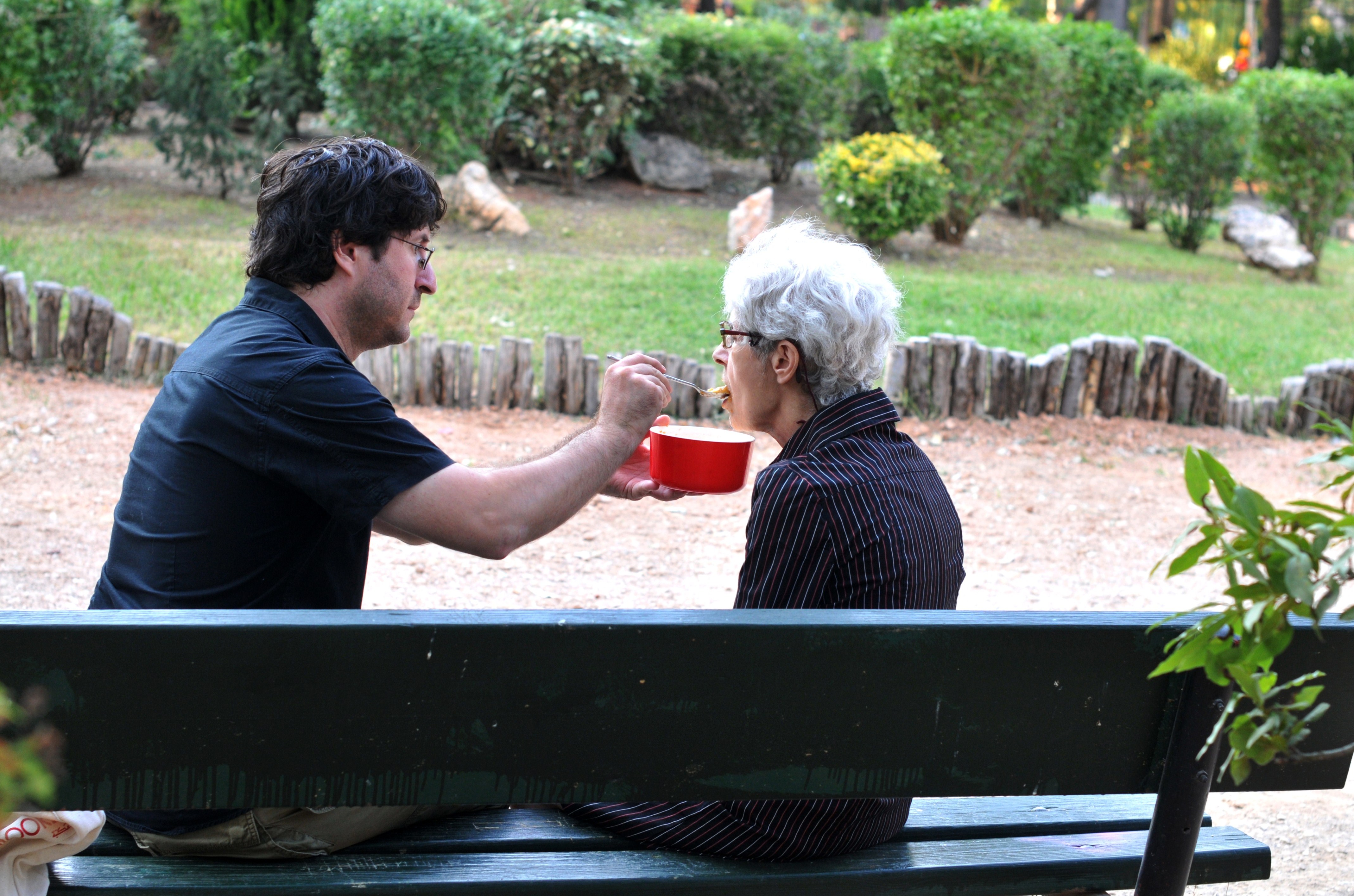 A man feeding an older woman, Athens, Greece, 2013 / Άντρας ταΐζει ηλικιωμένη γυναίκα, Αθήνα, 2013