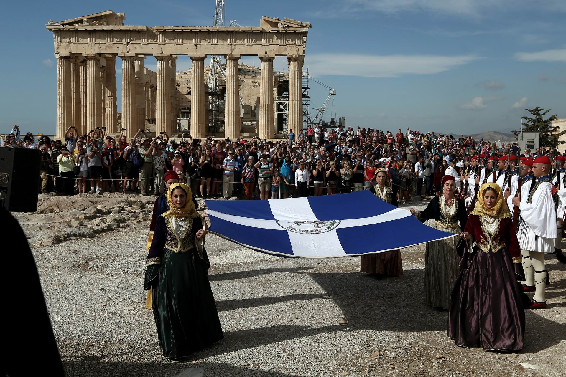 Η Αθήνα γιόρτασε χθες την 72η επέτειο απελευθέρωσης απο τους Ναζί, με την καθιερωμένη τελετή ανήψωσης της Ελληνικής σημαίας στον Ιερό Βράχο της Ακρόπολης.