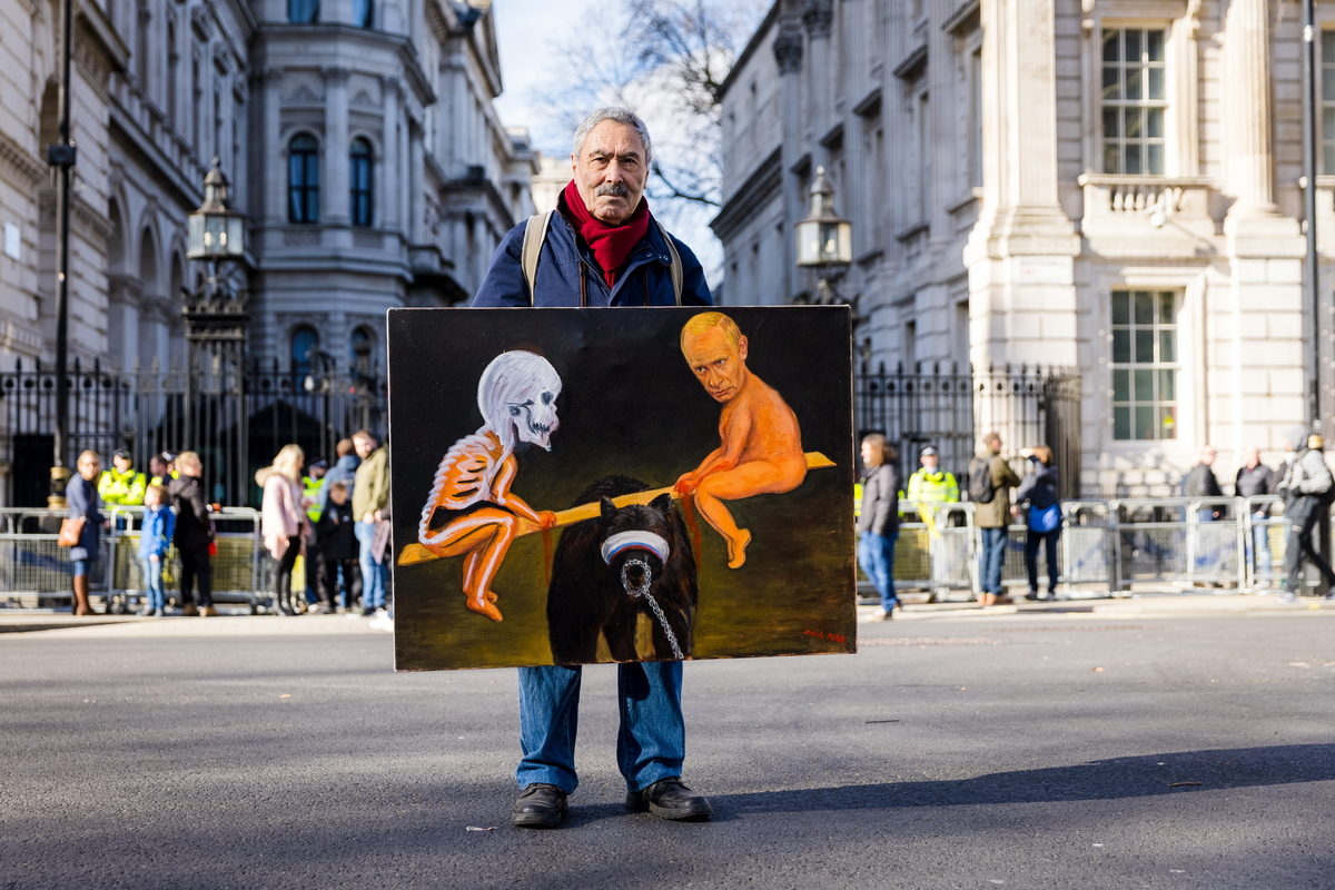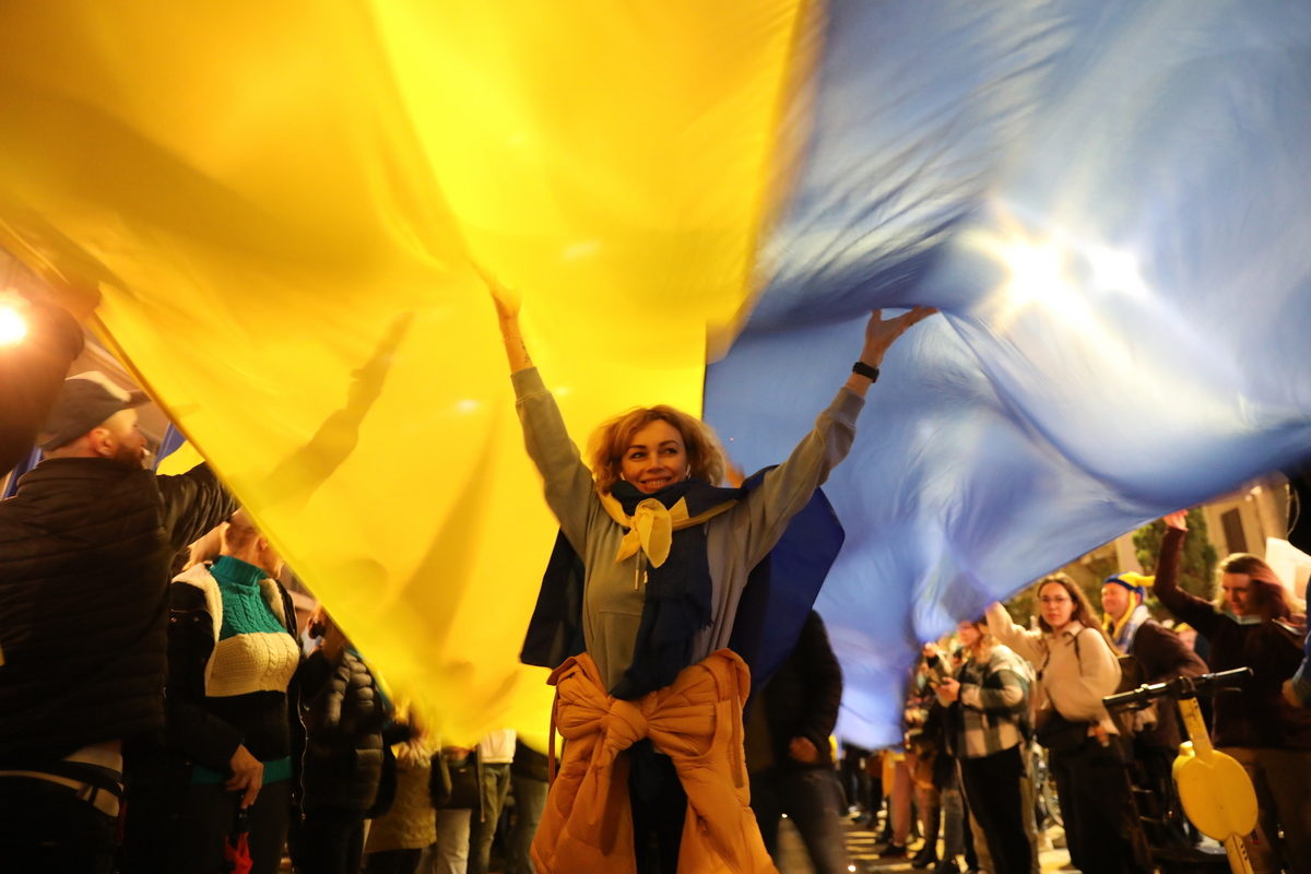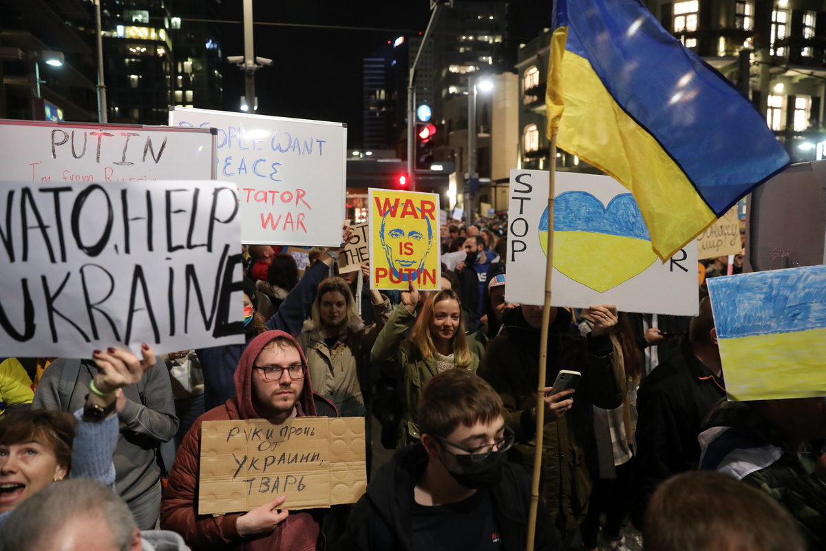 Κρατούσαν πλακάτ και φώναζαν συνθήματα υπέρ της ειρήνης, ενάντια στον πόλεμο κι ενάντια στον ίδιο τον Βλάντιμιρ Πούτιν και στην παράλογη απόφασή του να επιτεθεί σε ένα ελεύθερο κράτος.