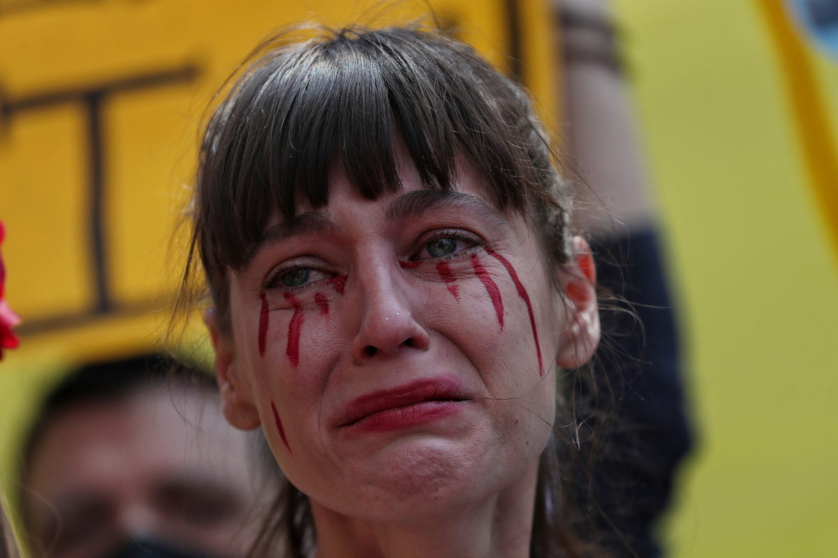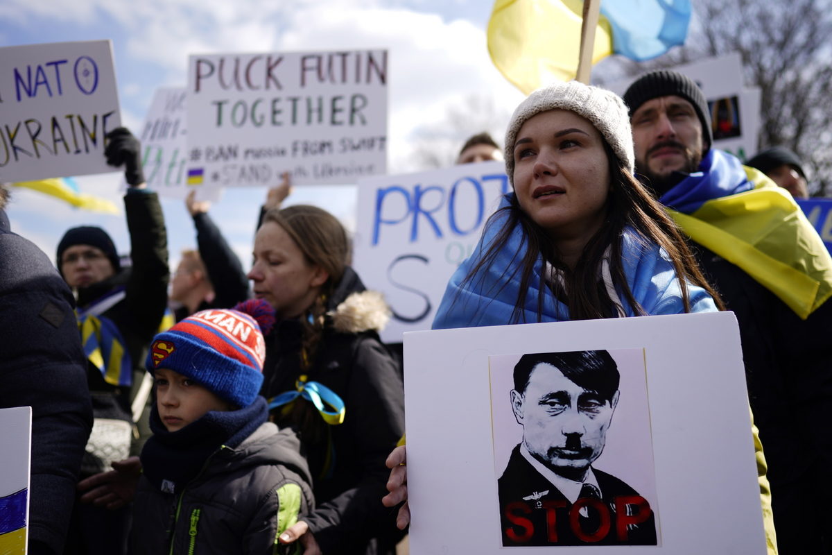 Ανάμεσά τους ήταν πολλοί Ουκρανοί που ζουν σε άλλες χώρες και οι οποίοι, απελπισμένοι ζητούσαν να αποσυρθούν άμεσα τα ρωσικά στρατεύματα από την πατρίδα τους και να σιγήσουν τα όπλα.