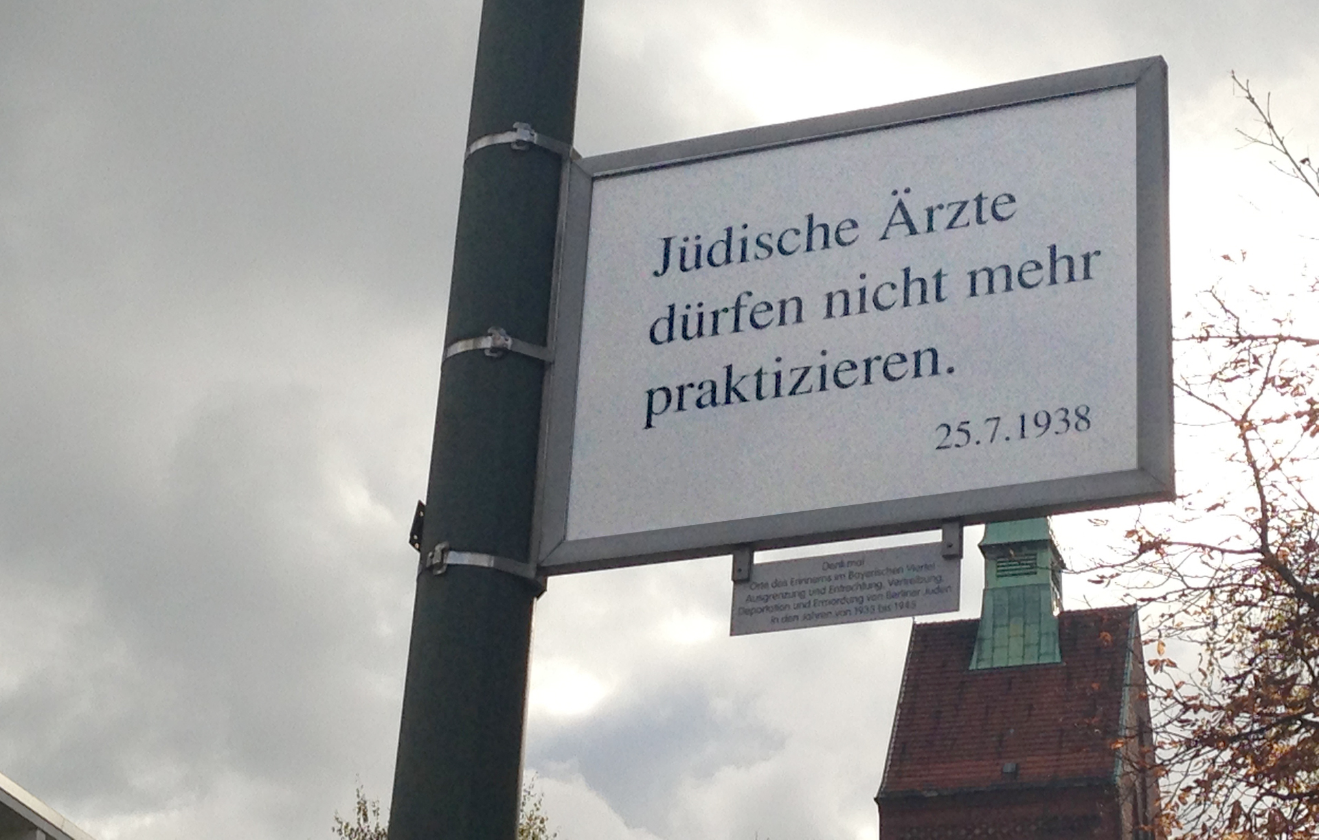 Υπάρχει στην πόλη ένα μοναδικό δημόσιο μνημείο που σε αναγκάζει να φανταστείς ότι είσαι Βερολινέζος στη ναζιστική Γερμανία. Η Βαυαρέζικη Γειτονιά, στο Σένεμπεργκ του Δυτικού Βερολίνου, είναι σπαρμένη με 80 πινακίδες πάνω στις οποίες αναγράφονται μερικοί μόνο από τους αμέτρητους νόμους και κανονισμούς που ξεκινώντας από το 1933 ρύθμιζαν ασφυκτικά τη ζωή των Εβραίων. Εδώ, σε αυτή τη γειτονιά με την έντονη πνευματική και καλλιτεχνική ζωή όπου ζούσαν πολλοί Εβραίοι της μεσαίας και ανώτερης τάξης, οι ναζί συγκέντρωσαν 6.000 Εβραίους τους οποίους είχαν εκδιώξει από τα σπίτια τους στο υπόλοιπο Βερολίνο. Τους εγκατέστησαν σε κτίρια που ονομάστηκαν “Εβραιόσπιτα”. Ήταν ο τελευταίος τόπος διαμονής τους πριν φορτωθούν στα τρένα για τα στρατόπεδα.